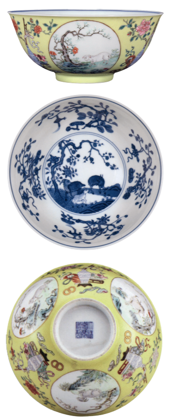 三阳开泰洋彩黄地珐琅瓷碗