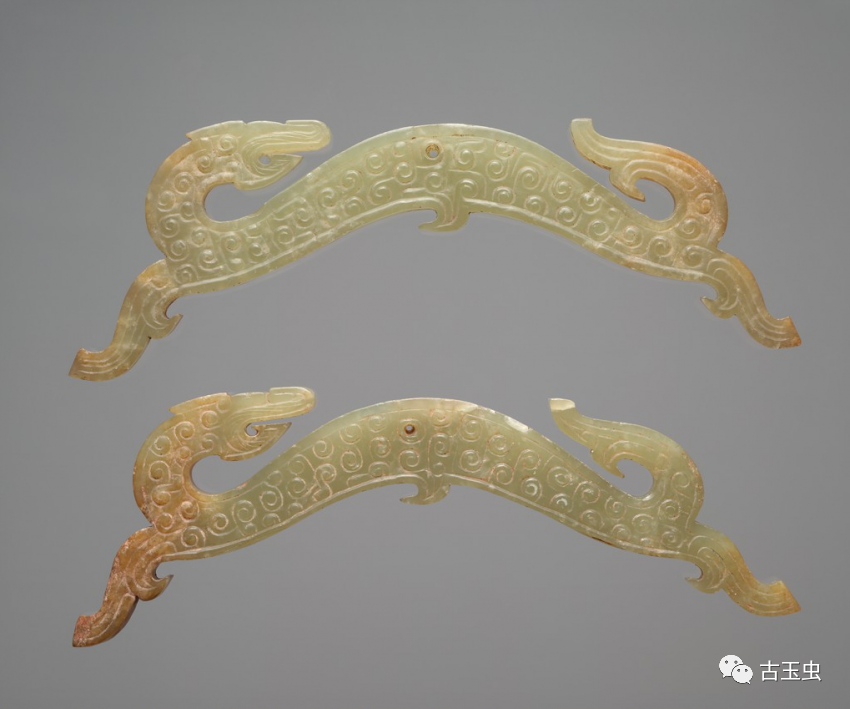 战国 龙形玉饰一对 美国哈佛艺术博物馆藏