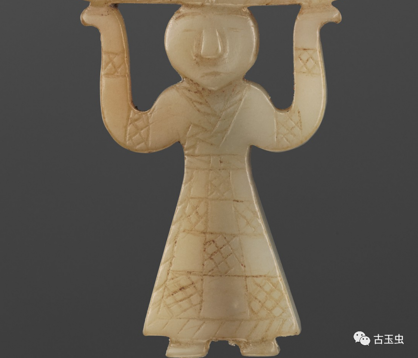 战国 人上人玉饰件(正面局部1) 美国哈佛艺术博物馆藏