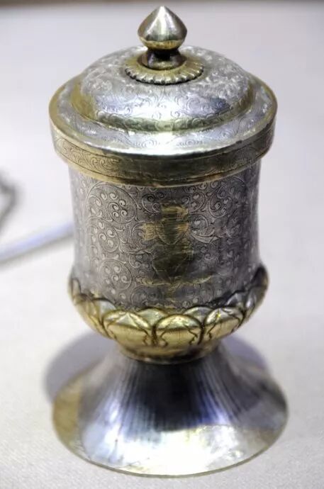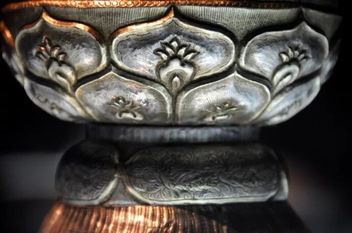 法门寺地宫所藏一套金银茶具,质地精良,造型优美,工艺先进,系列完整,是迄今为止发现的世界上最早、等级最高的宫廷茶具,从中可见唐代帝王对茶文化的重视和供佛的虔诚。唐懿宗、僖宗父子重视茶具,他们下诏文思院和地方官吏打造鎏金银碾子、罗子、笼子、匙子、则子、盐台、龟台以及银火筋和琉璃茶碗拓子等造茶、饮茶的器具。在法门寺地宫所藏一些茶具上有以硬物刻划的“五哥”两字。而“五哥”乃是唐僖宗小时皇宫内对他的爱称,表明这些茶具为唐僖宗所供奉。法门寺地宫所藏宫廷茶具与陆羽《茶经》记述的民间茶具互为补充,相映生辉,使人们对唐代茶具有了更加完整、清晰的认识。