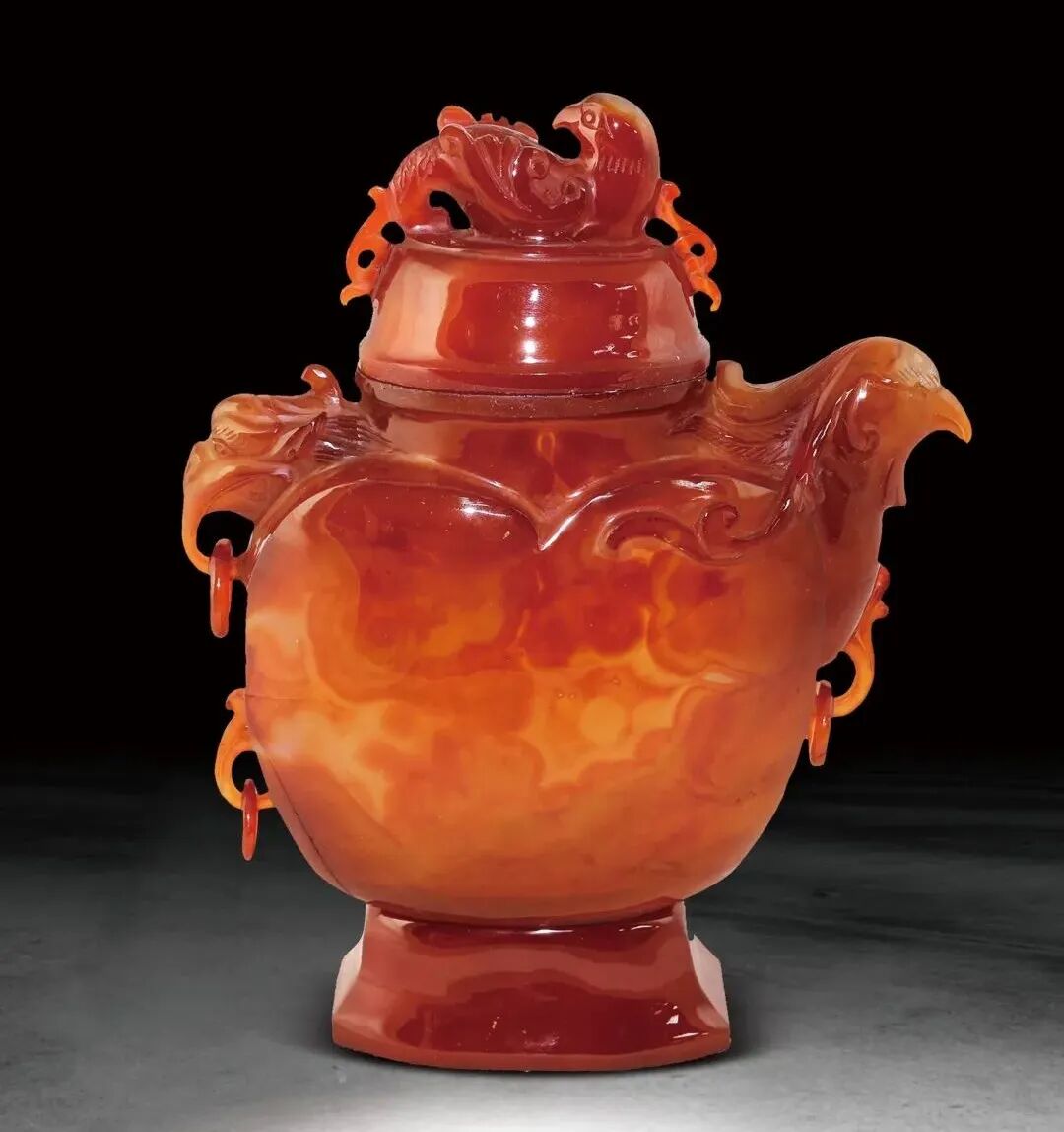 273 民國 瑪瑙雕龍鳳紋活環蓋瓶
