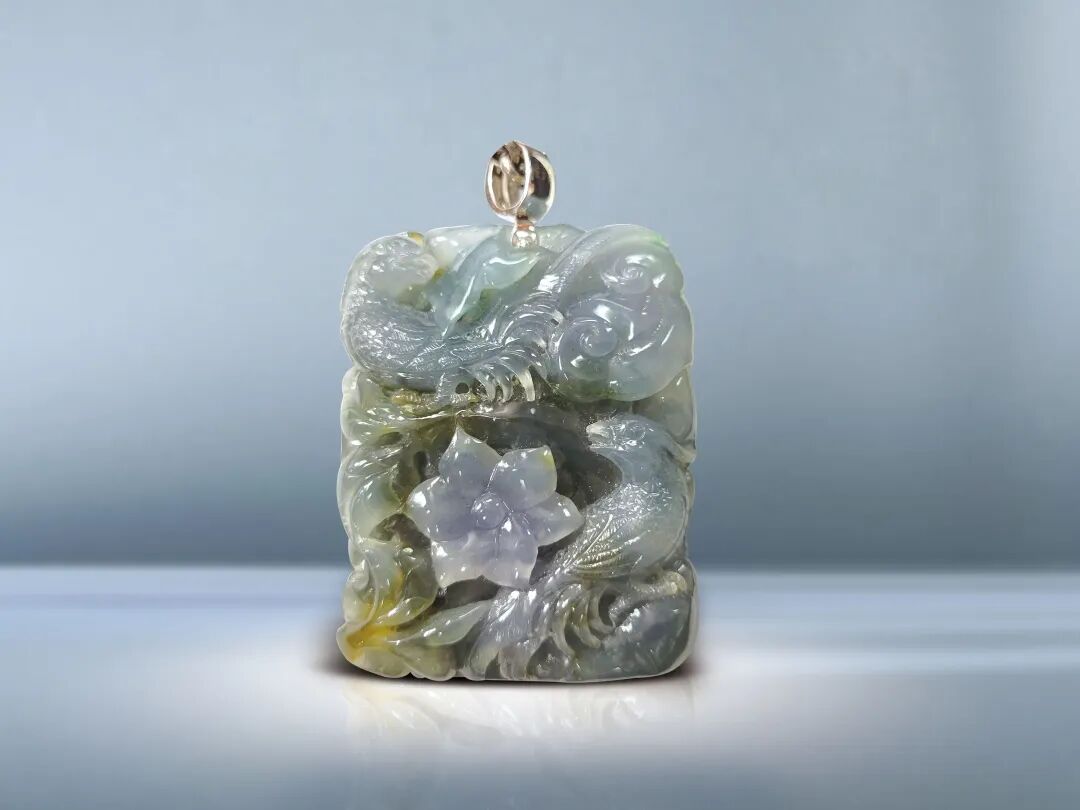 267 翡翠花鳥紋掛牌連銀鏈