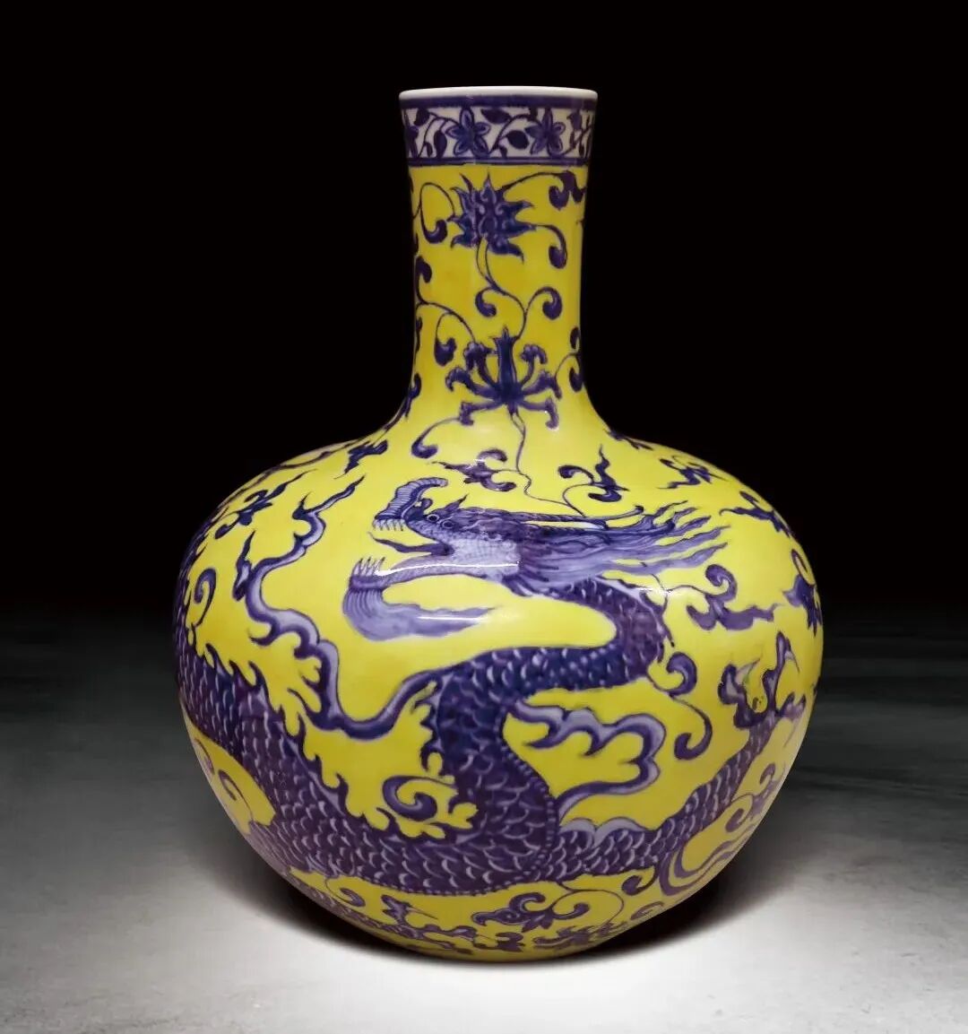 251 明晚期 黃地青花龍紋天球瓶