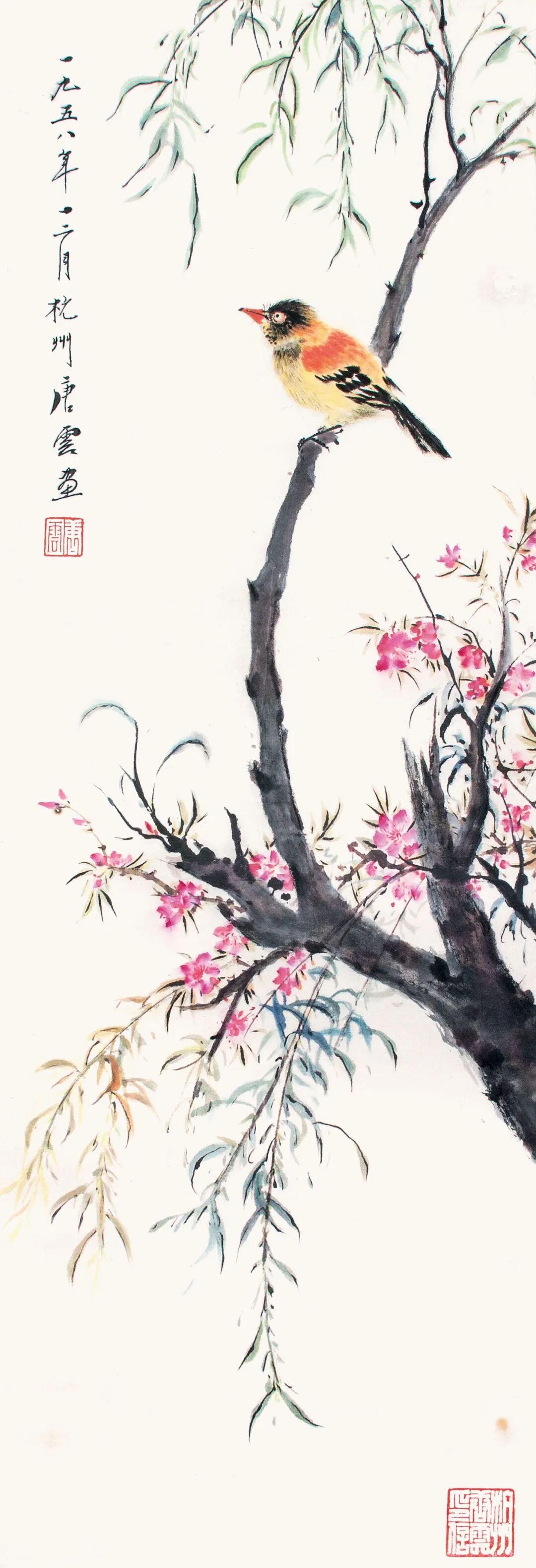 286 趙少昂 八哥登上柳梢頭