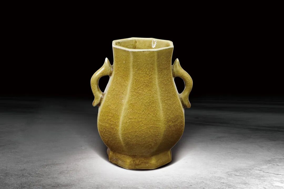 252 清 黃釉八棱魚耳尊