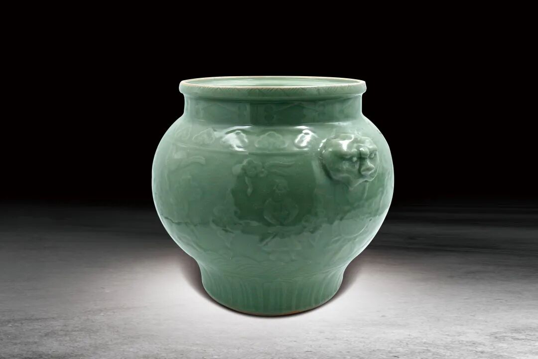 259 14世紀晚期 梅子青釉浮雕八仙過海紋罐