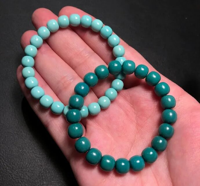 我是弘匠,做绿松石加工和雕刻十余年,现在是绿松石手工雕刻非遗传承人。料质细腻、瓷度高,这样的绿松石,玩出来的效果就很好。按照我们行话来说,就是“碴子细”,俗称“果冻料”!“果冻料”不但适合雕刻、上细工,而且变色快、颜色均匀,是最适合盘玩的绿松石。果冻料绿松石,即便随便盘盘,也能变色均匀、玉化透亮。而那些瓷度高,但料质不细腻的绿松石,即便悉心盘玩,依然还会变花、反白点。