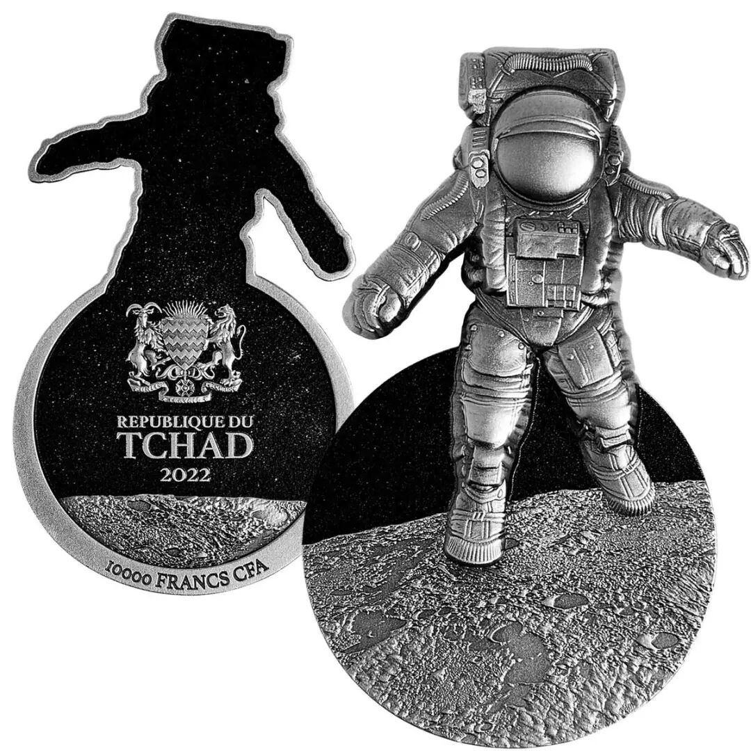 2022年,乍得以人类第一次登陆月球为原型,发行了一枚宇航员纪念币!异形设计,高浮雕非常有质感。