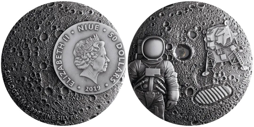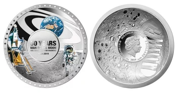 2019年是人类首次登上月球50周年,很多国家都发行了纪念人类登月50周年主题纪念币。