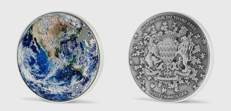 2022年,乍得发行了地球拼图纪念币,设计十分精美巧妙。