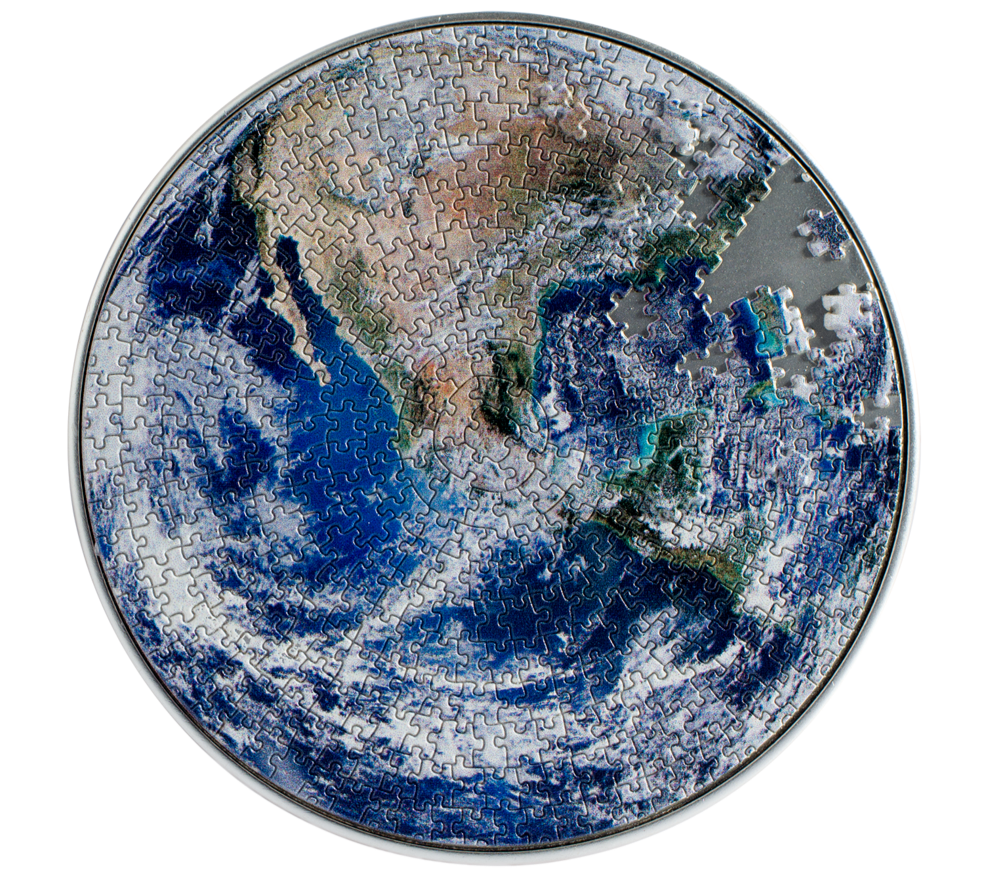 主景图案为一幅地球的俯视图,且每一枚拼图都是凹凸起伏的,就像真的拼图一样。