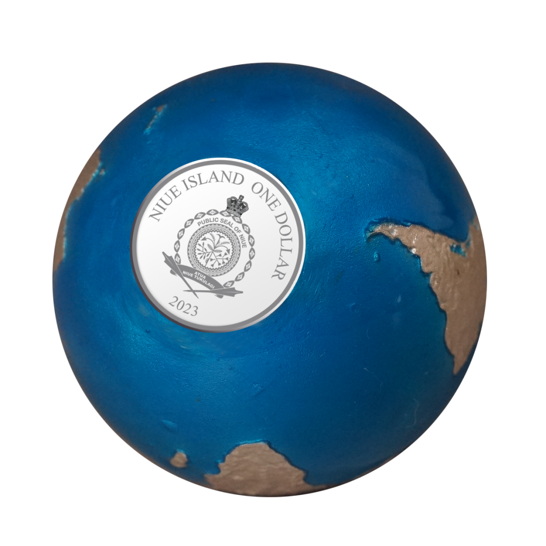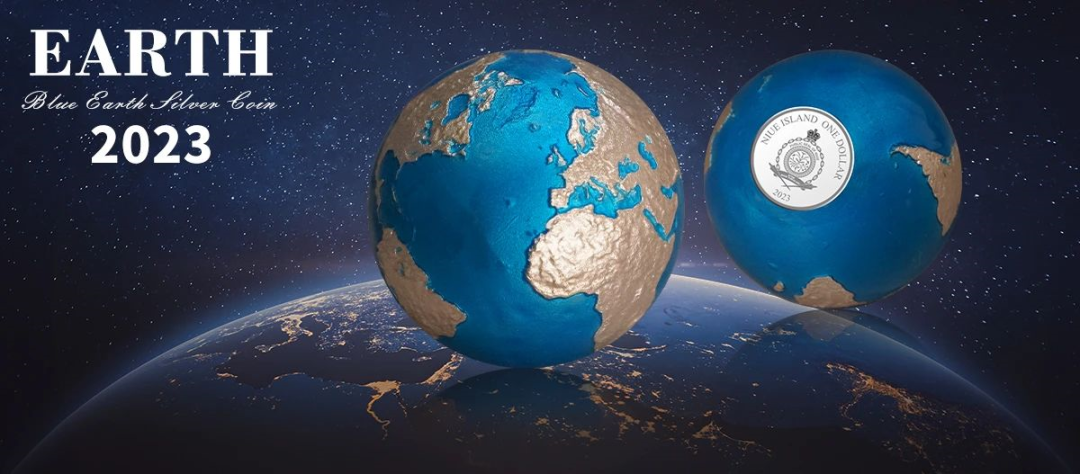 此外,今年纽埃发行了一枚蓝色地球3D立体球形银币,立体造币工艺,十分惊艳。