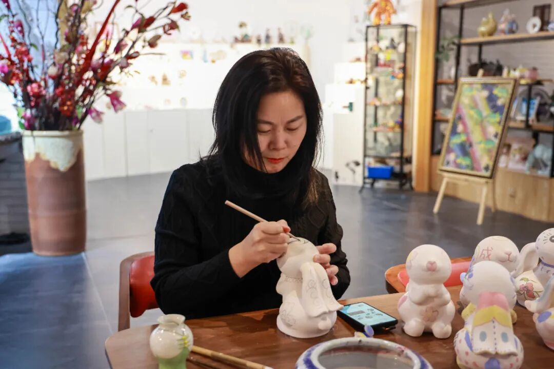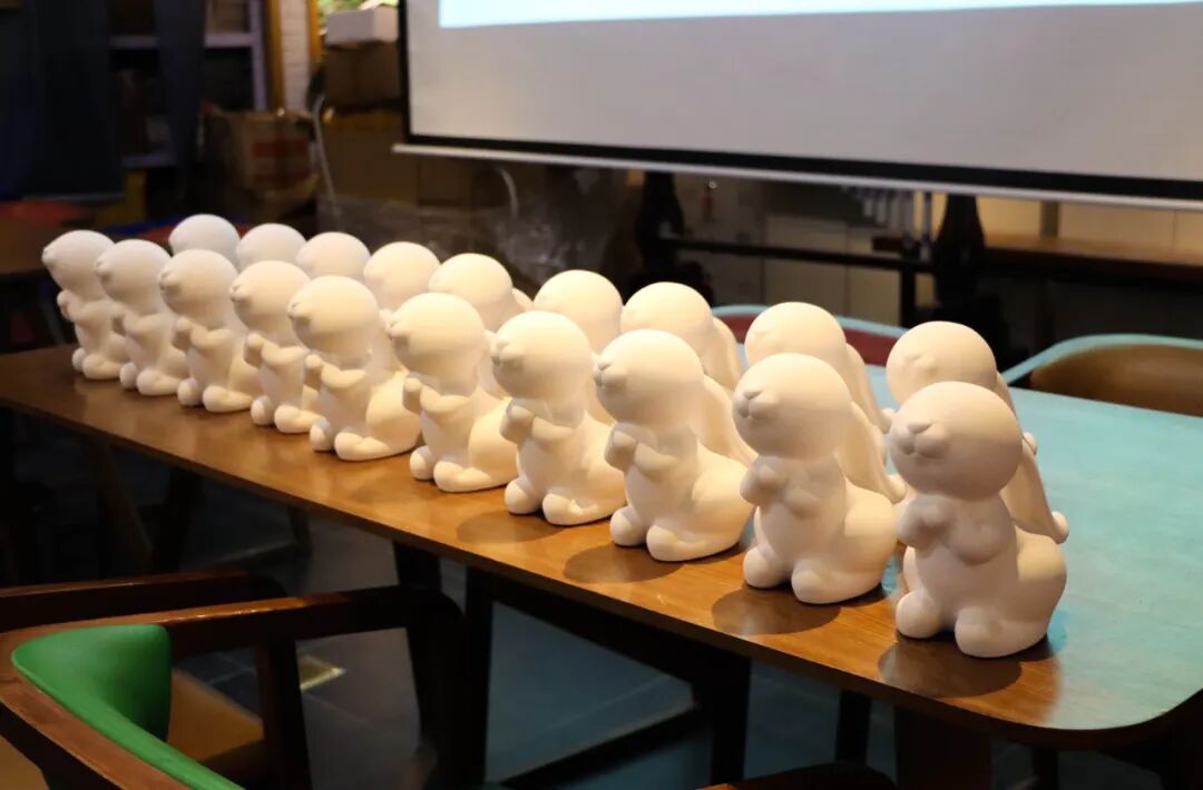 工会成员们纷纷发挥着自己的想象力与创造力,在元宵节日氛围中感受着传统文化的魅力,用釉下彩绘的画笔勾勒出一件件属于自己的小喜兔。