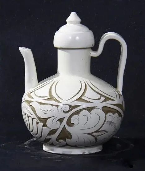 烧成后刻花线条和珍珠地呈现棕红色,与白色化妆土形成反差,使器物装饰显得色调明快,富有变化。