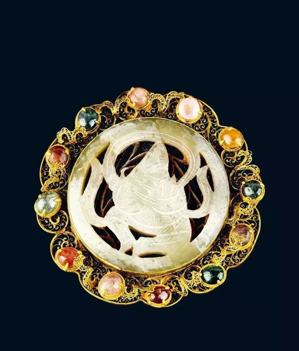 相传春秋时楚国的和氏璧几经流转,到了秦始皇手中。秦始皇命人将其制成玉玺,镌李斯所书“受命于天,既寿永昌”八字,刻五龙图案,视若珍宝。汉灭秦后,“和氏璧”落入刘邦手中,刘邦将其作为传国玉玺世代相传,一直传了十二代,藏玉玺于长乐宫。时逢王莽篡位,王莽胁迫孝元皇太后交出玉玺。太后不从,一怒之下掷玉玺于地,摔掉一角。王莽命巧匠以黄金修补,修补后,玉玺更加光彩夺目,被命名为“金镶玉玺”。可惜,这个稀世国宝“金镶玉玺”后来几经转手,到三国时代就不知去向了。但金镶玉的制作工艺却被传承下来,并由宫廷走向民间,达官贵人中出现各种金镶玉饰物甚至金镶玉筷子等。由于黄金镶嵌各种宝石的工艺极为精细复杂,汉代以来传世作品并不多见,能制作金镶玉精品的工匠也是凤毛麟角。到清代乾隆年间,由乾隆宠爱的香妃带到中原的进贡玉器中,一些俱有伊斯兰风格的“痕都斯坦”玉器中就有几件金镶玉。看着这些莹薄如纸,嵌有金银丝和各色宝石、玻璃的器皿,乾隆皇帝爱不释手,当即做出了一项决定:金镶玉只为宫中所有,不予外传,并命内务府造办处仿制。清代末期,皇族没落,大批的宫廷技艺就在这个时期失传了,乾隆工金镶玉便是其中之一。金和玉,它们一个光芒外露,一个光华内蕴,一个奢华,一个低调,一个绚烂至极,一个又归于平淡。或许是人的天性中就有好上加好、精益求精的愿望,梦想在两种名贵之物的叠加中达到奢华的顶峰;或许是出于对残损的玉石的怜惜,让流动多变的黄金来弥补玉的缺憾……金银之类的首饰时可以通过人的冶金加工,产量出成色相同、重量相同、质地相同、形状相同的金银首饰。如若有所区别,后期也可以再加工、熔铸生成。而玉石不同,玉石是经过大自然地质运动生成,是天然的产物,人们在开采出来以后只会对其进行简单的打磨处理,如若后期经过再加工、化学处理的话,会改变玉石原有的结构,改变了其本质。所以世界上没有两块完全相同的玉,即使出自于同一块原石,也会有细微不同,这就是玉石的魅力,独一无二,浑然天成。古人自然知道这个道理,所以,自古以来,以玉拟君子的说法比比皆是,君子以佩玉为荣,无故玉不去身。而“传玉不传金”的说法,便是对玉德的至高追捧。