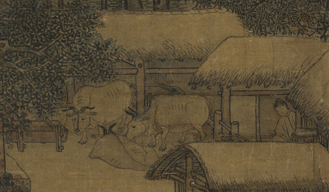 金 佚名《雪栈牛车图》局部 台北故宫博物院藏