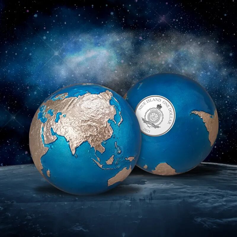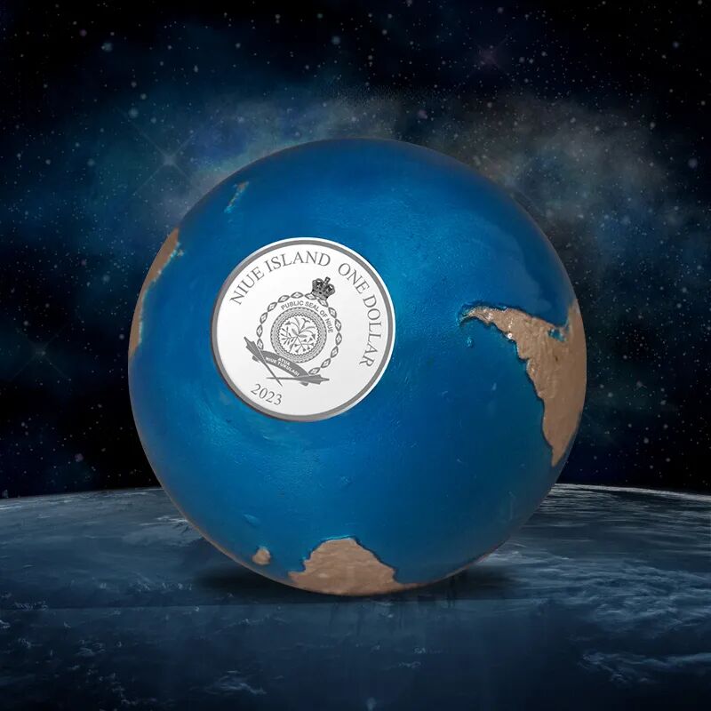 2023年蓝色地球3D立体银币由纽埃发行,打破以往3盎司规格,以40克小规格足银打造惊艳亮相!属于星球系列的龙头币,收藏价值不言而喻!
