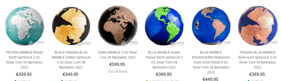 立体地球纪念币,自2020年开始发行,规格都为3盎司,至今已延续发行了十余枚,每一枚都有较高的溢价。