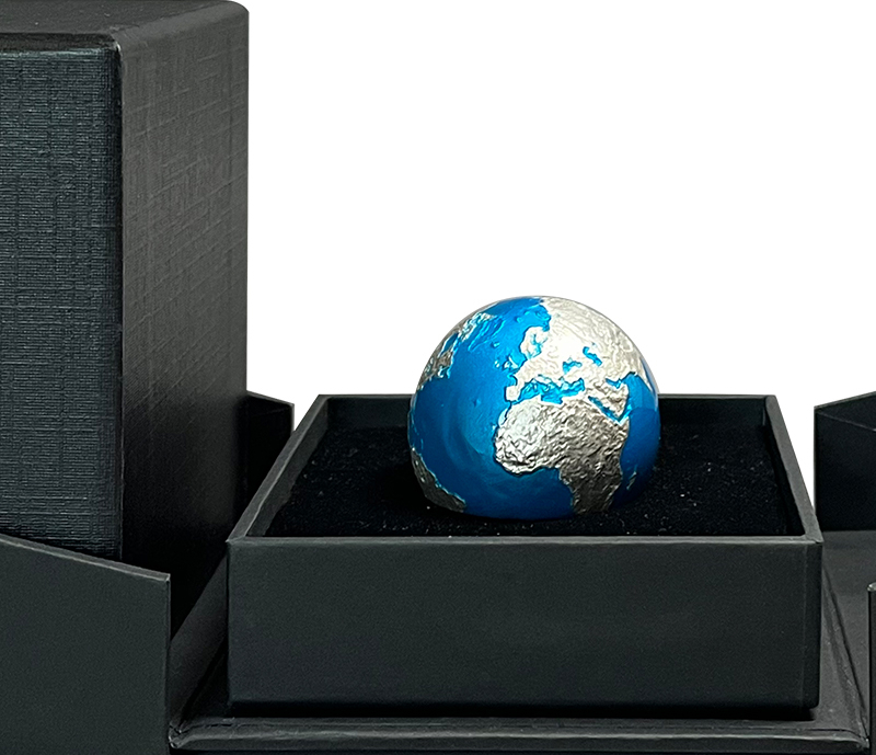 地球表面有70%被水覆盖,所以又叫“蓝地球”。这枚银币以真实的地球为参照,3D立体球形设计,运用多种造币工艺,深度真实还原地球。