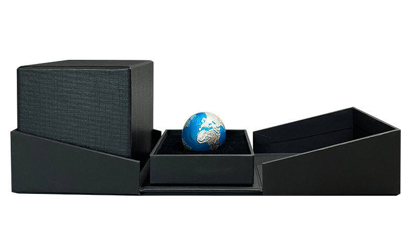 每枚银币都附有一个精致的黑色立体礼盒,高级而神秘。
