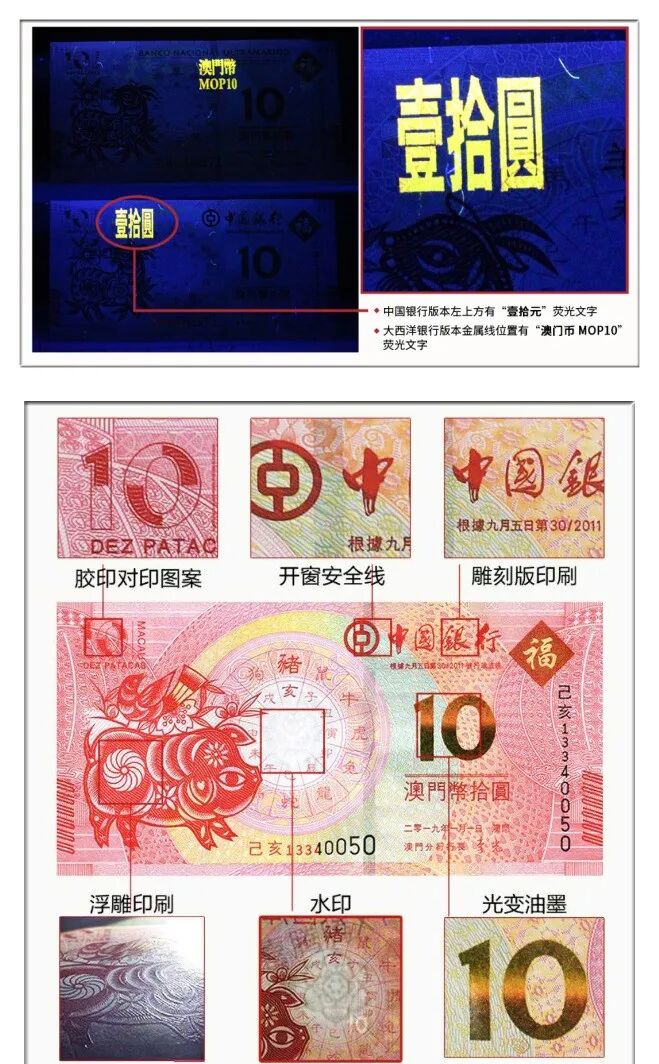 澳门生肖对钞大面积采用先进的SD凹版对印技术、开窗安全线、胶印对印图案、荧光显示检测及胶印凹印微缩文字等多项措施并举,为其增色不少。