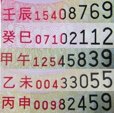 且还采用双色异型双号码排列,横号码中的中文冠字及前三位半的数字为红色,后三位半的数字为黑色。