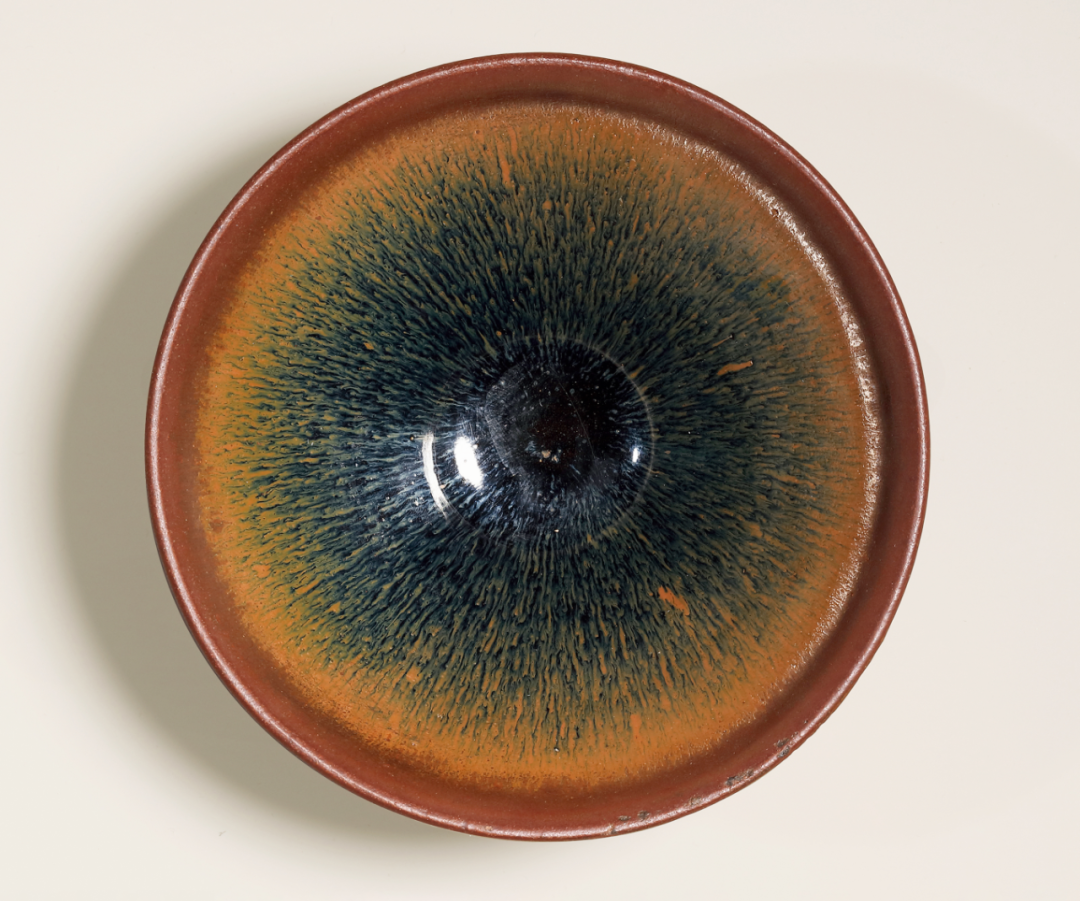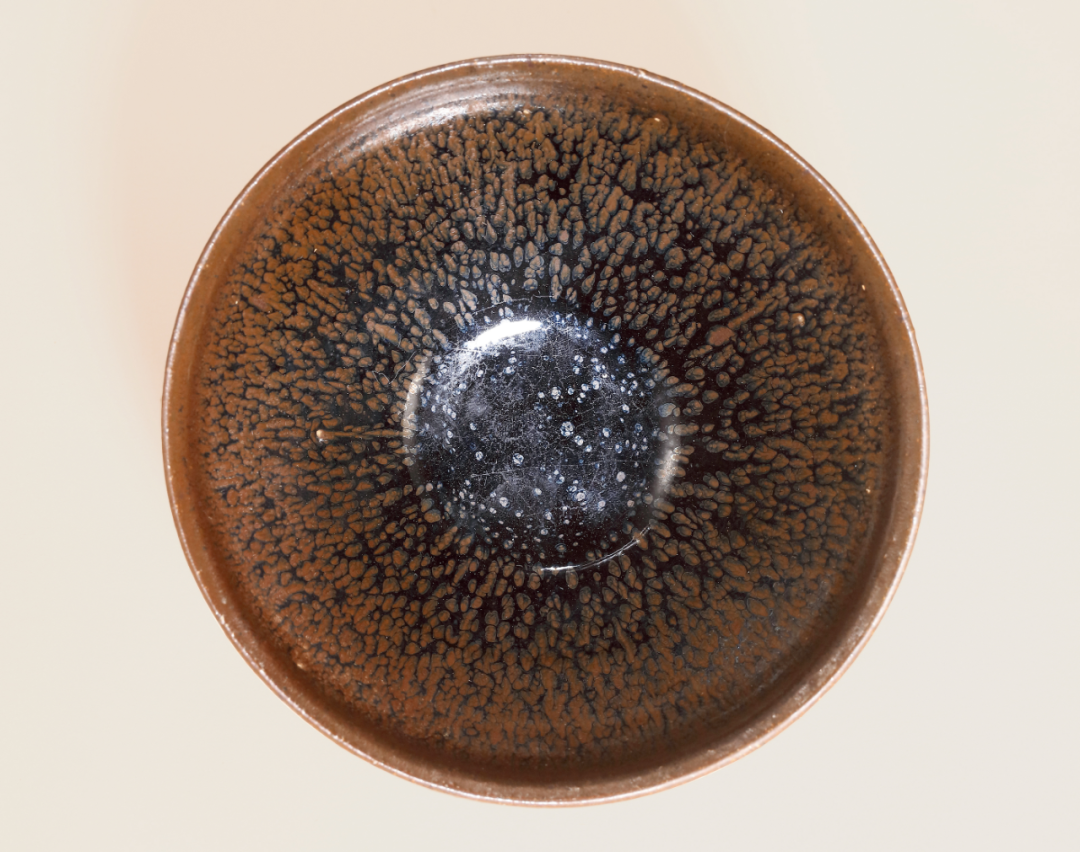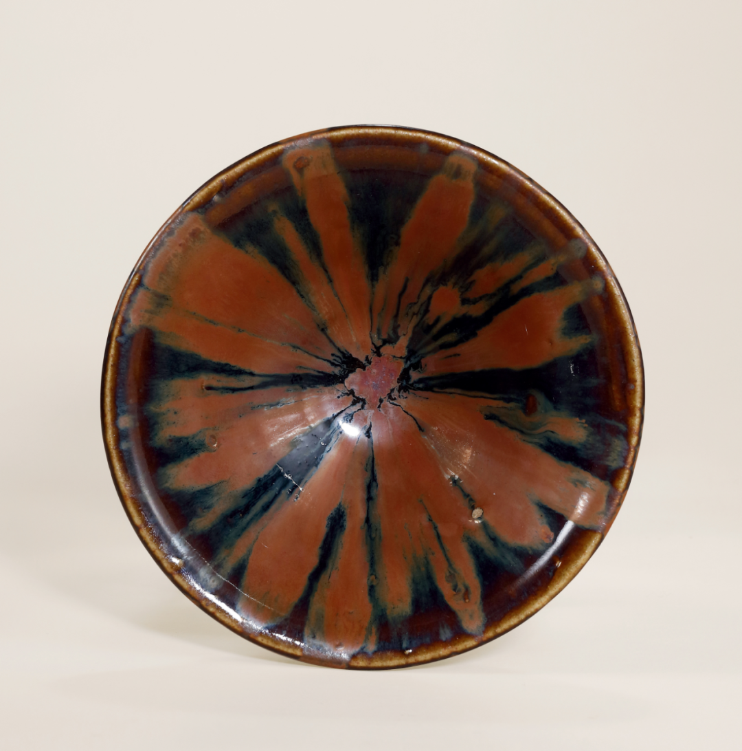 单色釉瓷渐演变出各样装饰风格,运用含铁量高化妆土,以绘画、泼洒等技法上色;入窑后,釉面装饰随着温度交融,或因地心引力下流,或细长如羽、或大小交错,自然形成趣味各异之纹饰。此类茶盌,不仅适合用于茶席,釉彩千变万化之面貌,引人入胜,亦深受宋代文人喜爱。