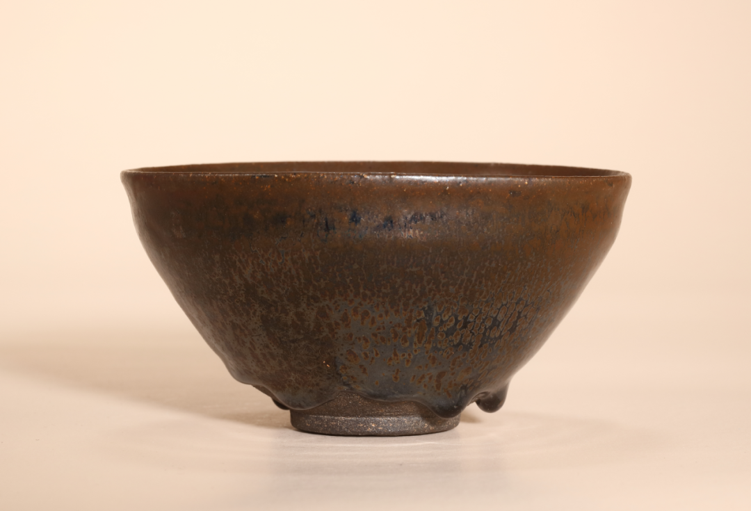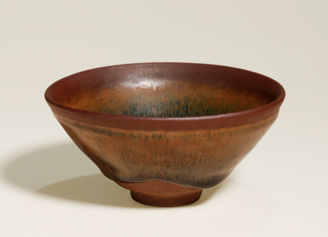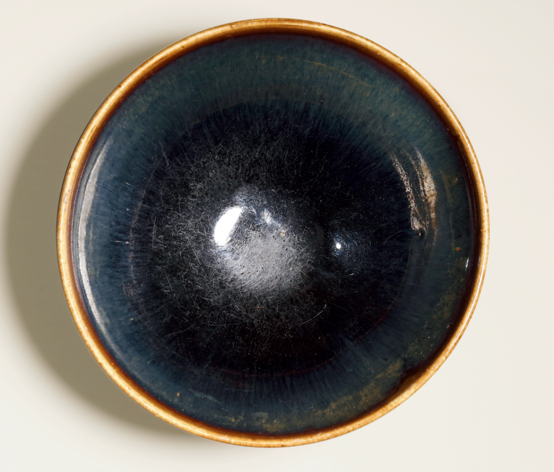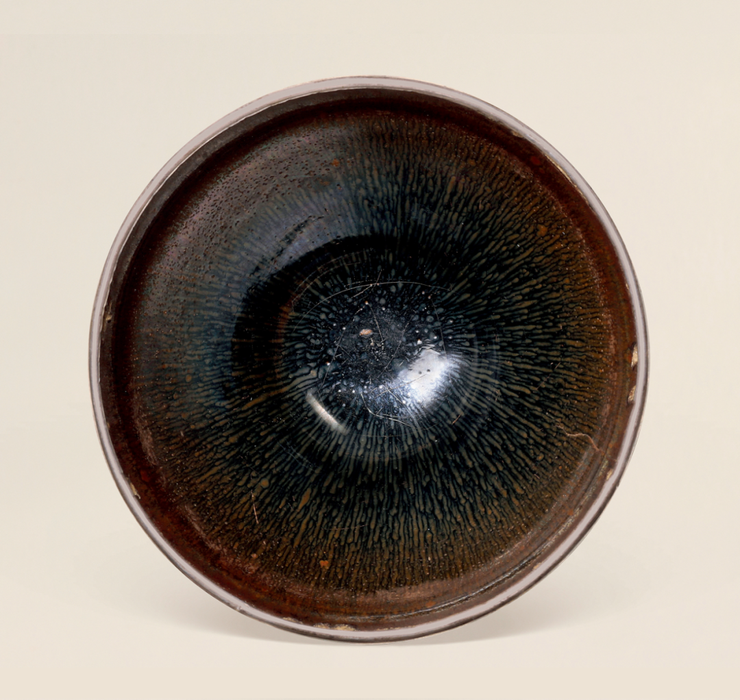 单色釉瓷渐演变出各样装饰风格,运用含铁量高化妆土,以绘画、泼洒等技法上色;入窑后,釉面装饰随着温度交融,或因地心引力下流,或细长如羽、或大小交错,自然形成趣味各异之纹饰。此类茶盌,不仅适合用于茶席,釉彩千变万化之面貌,引人入胜,亦深受宋代文人喜爱。