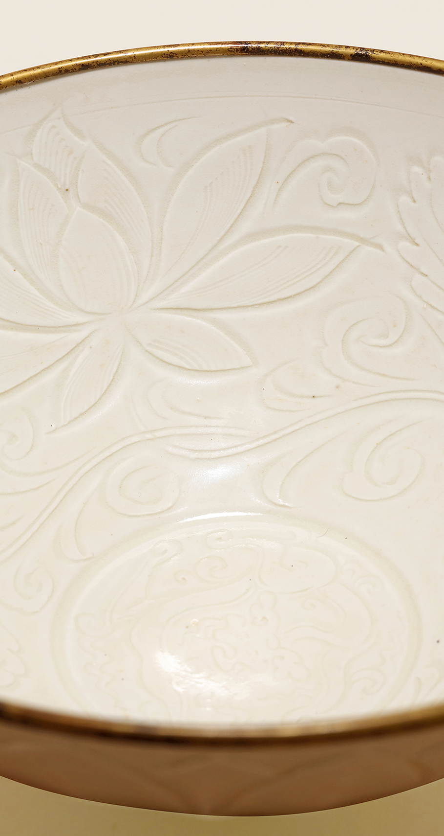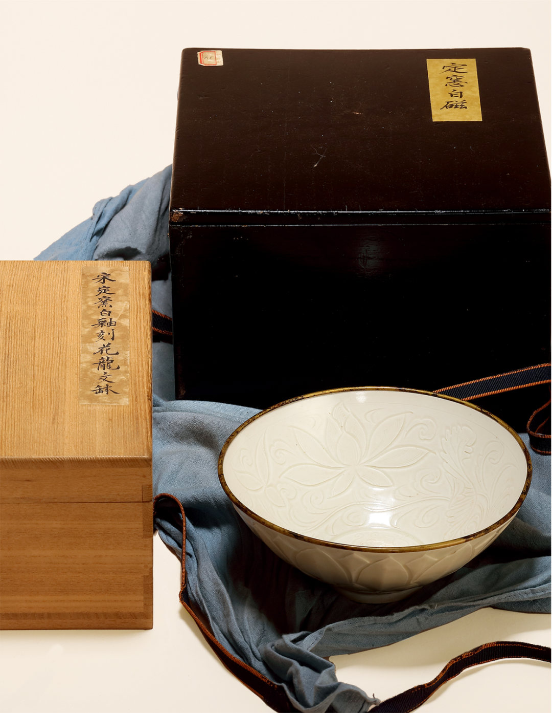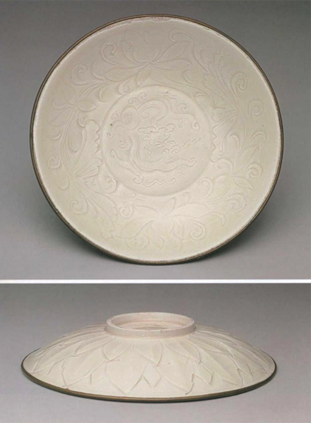 北宋 定窑白釉螭龙纹外刻莲瓣纹碗