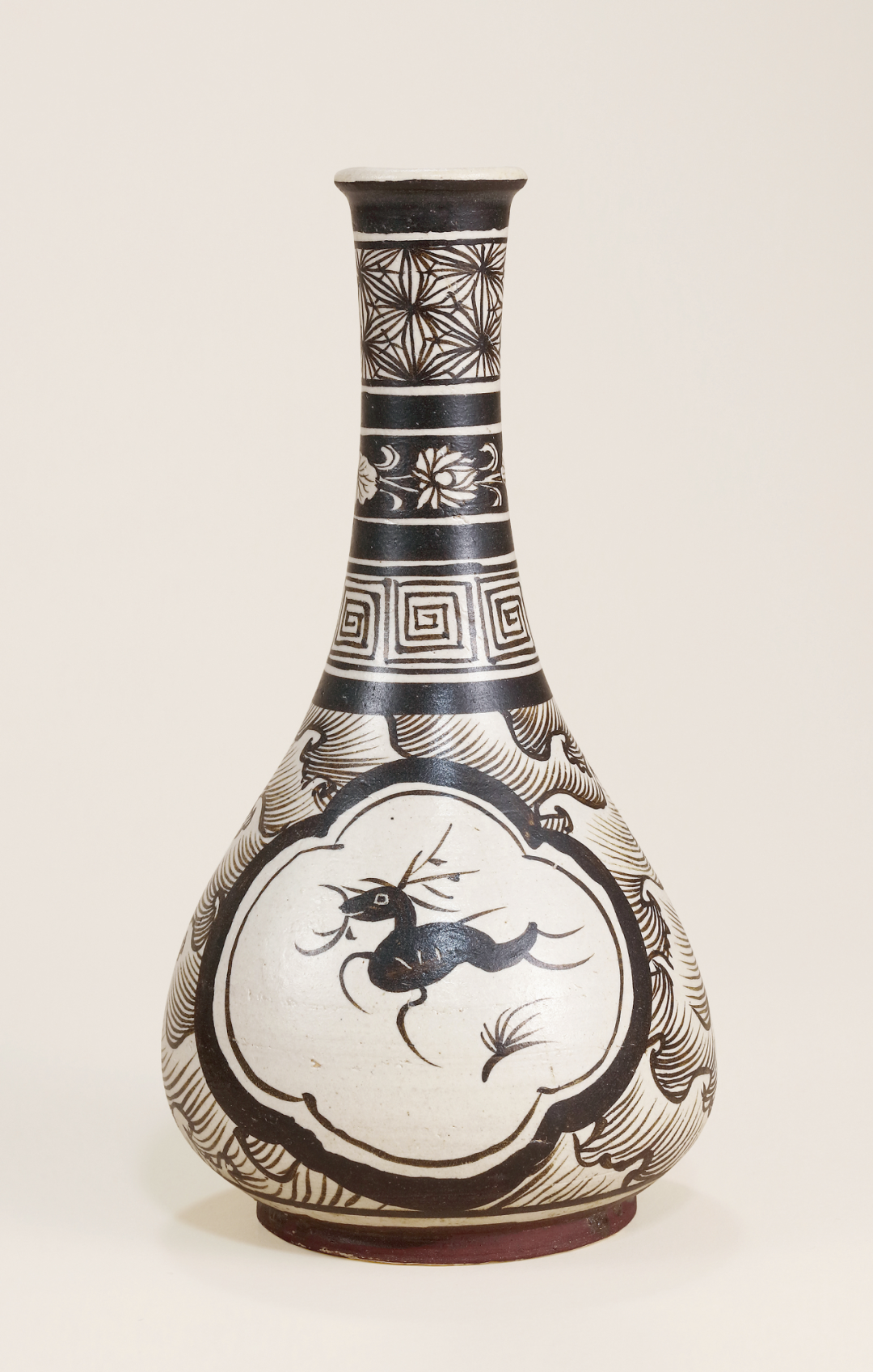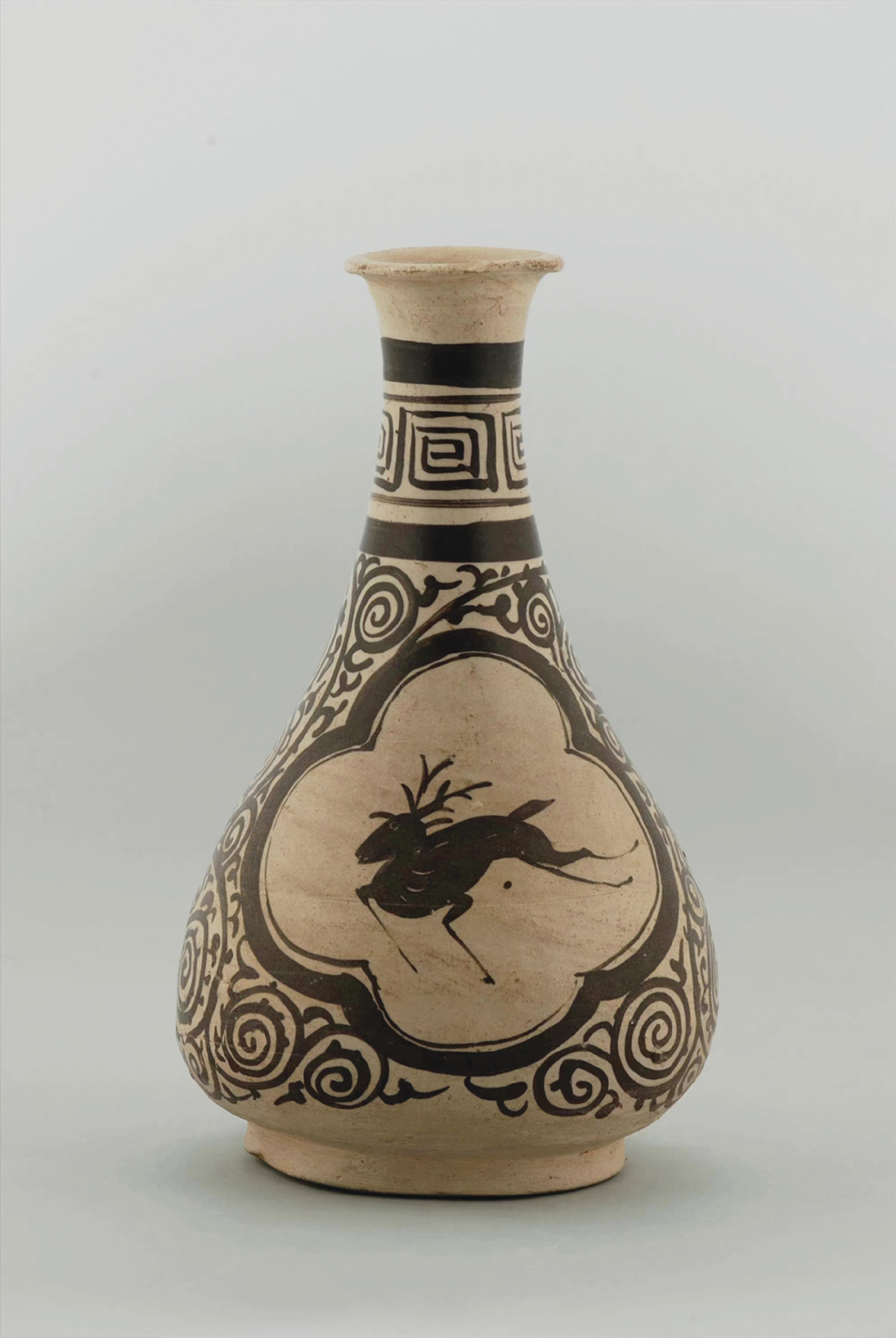 南宋 吉州窑彩绘卷草纹跃鹿瓶