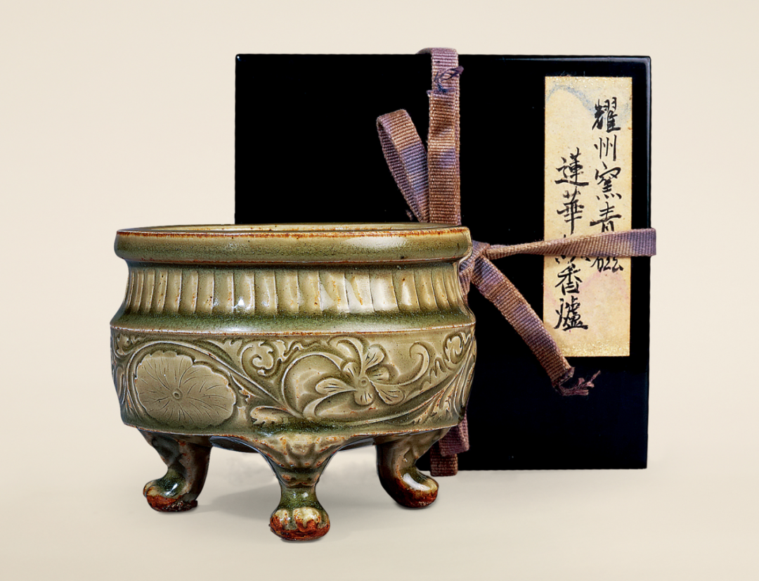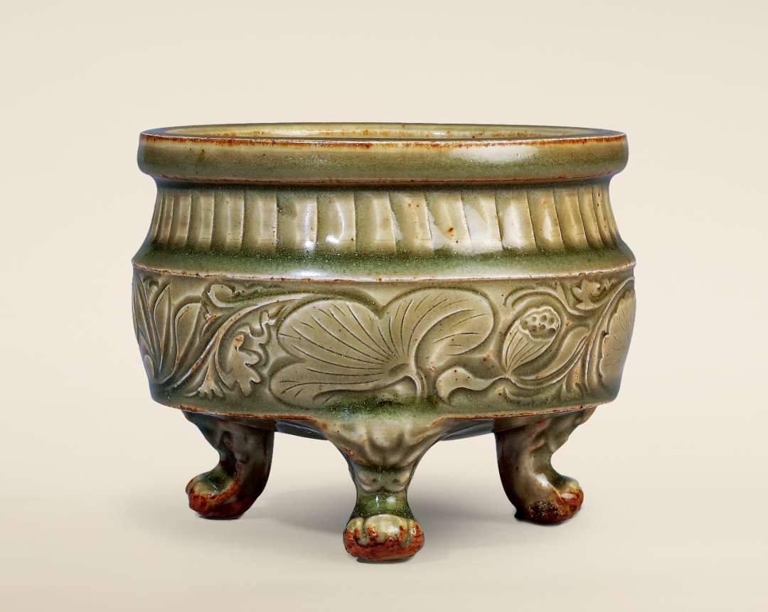 明耀州刻花卉三足小炉