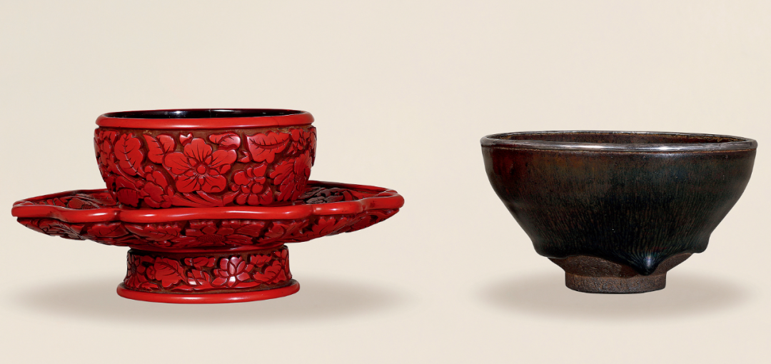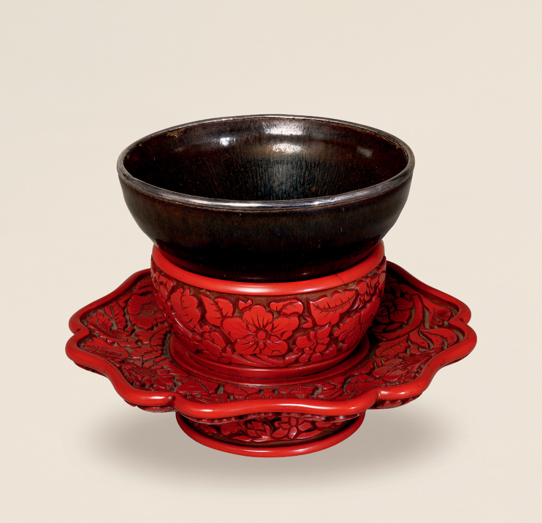 明建窑天目盏及剔红花卉盏托
