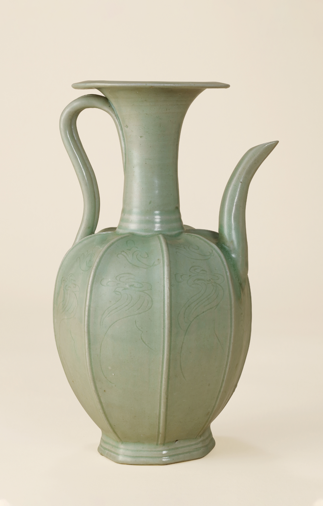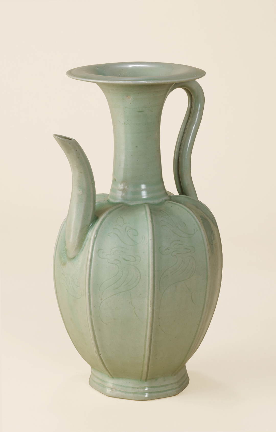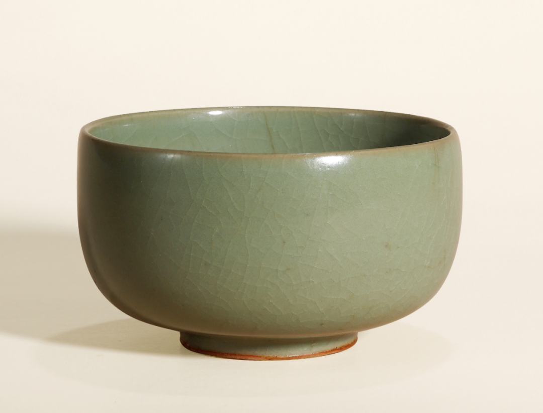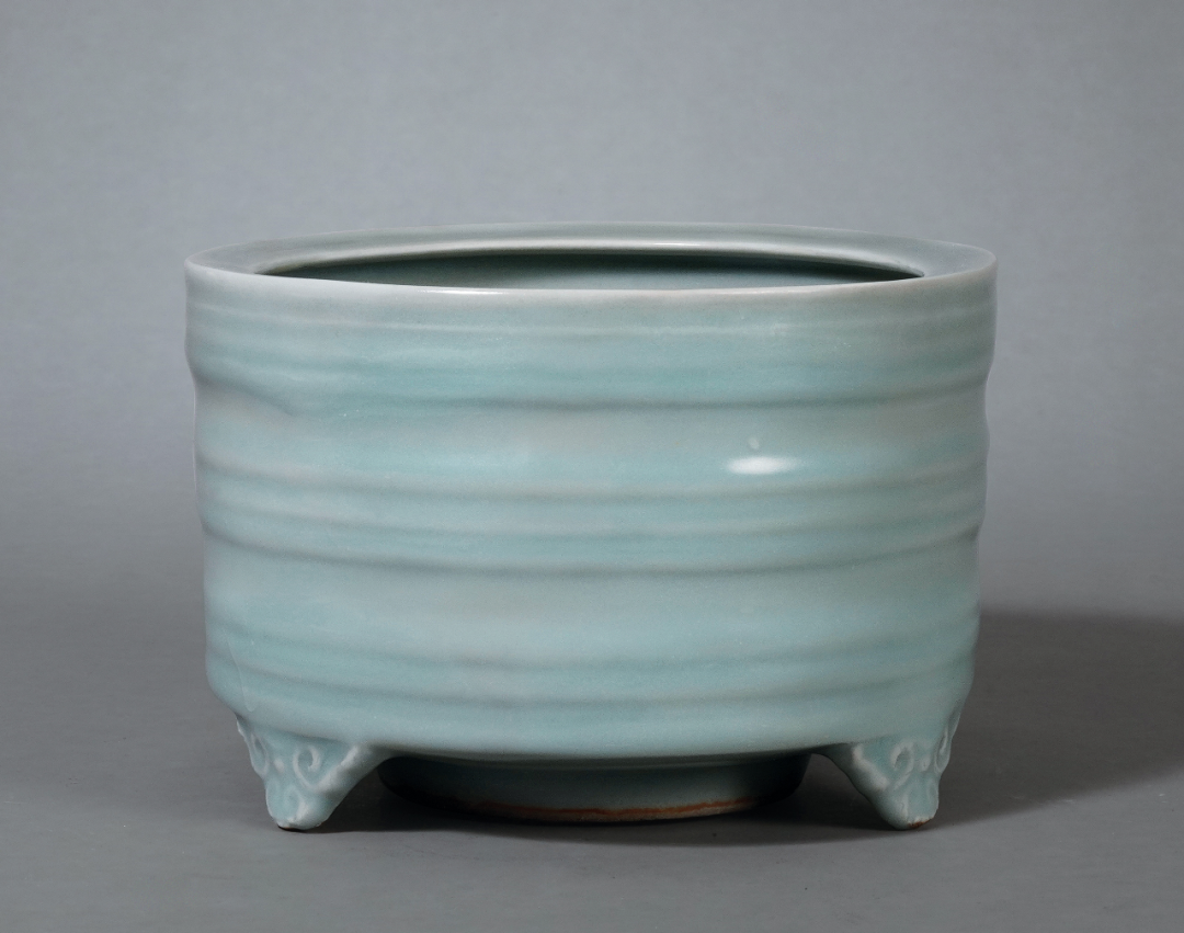 明 龙泉窑粉青釉弦纹如意足樽