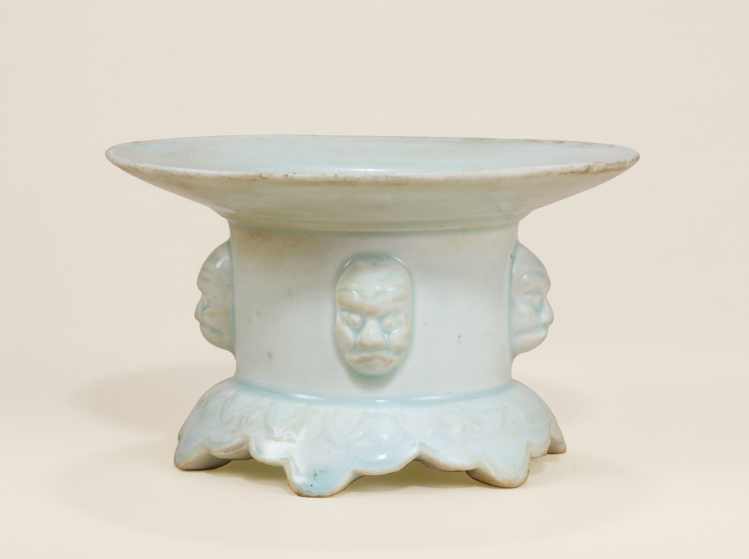 明湖田窑塑人面莲瓣纹香炉