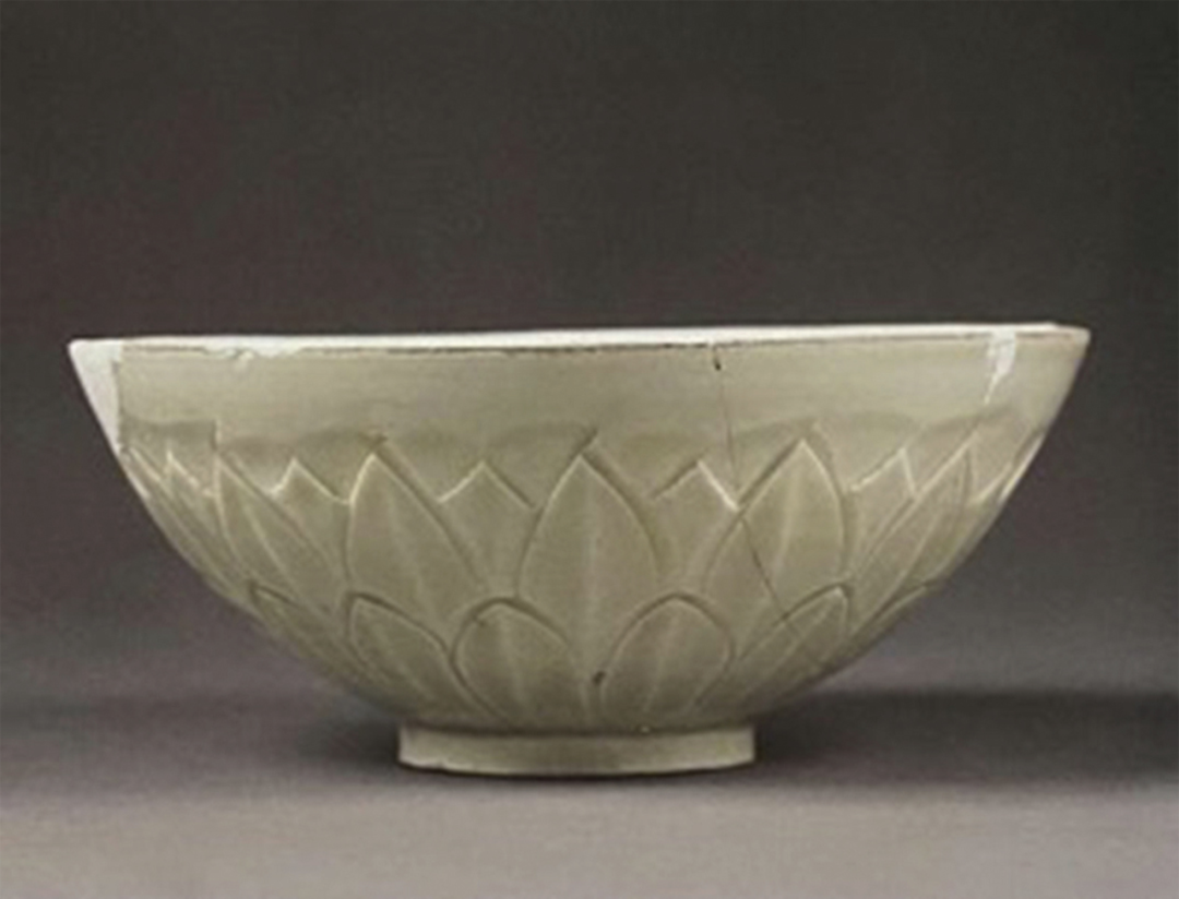 北宋 定窑白釉六瓣划花莲荷螭龙纹碗