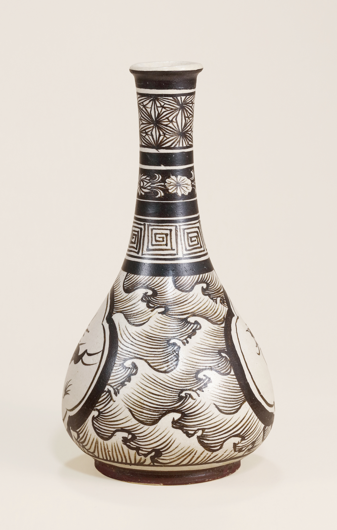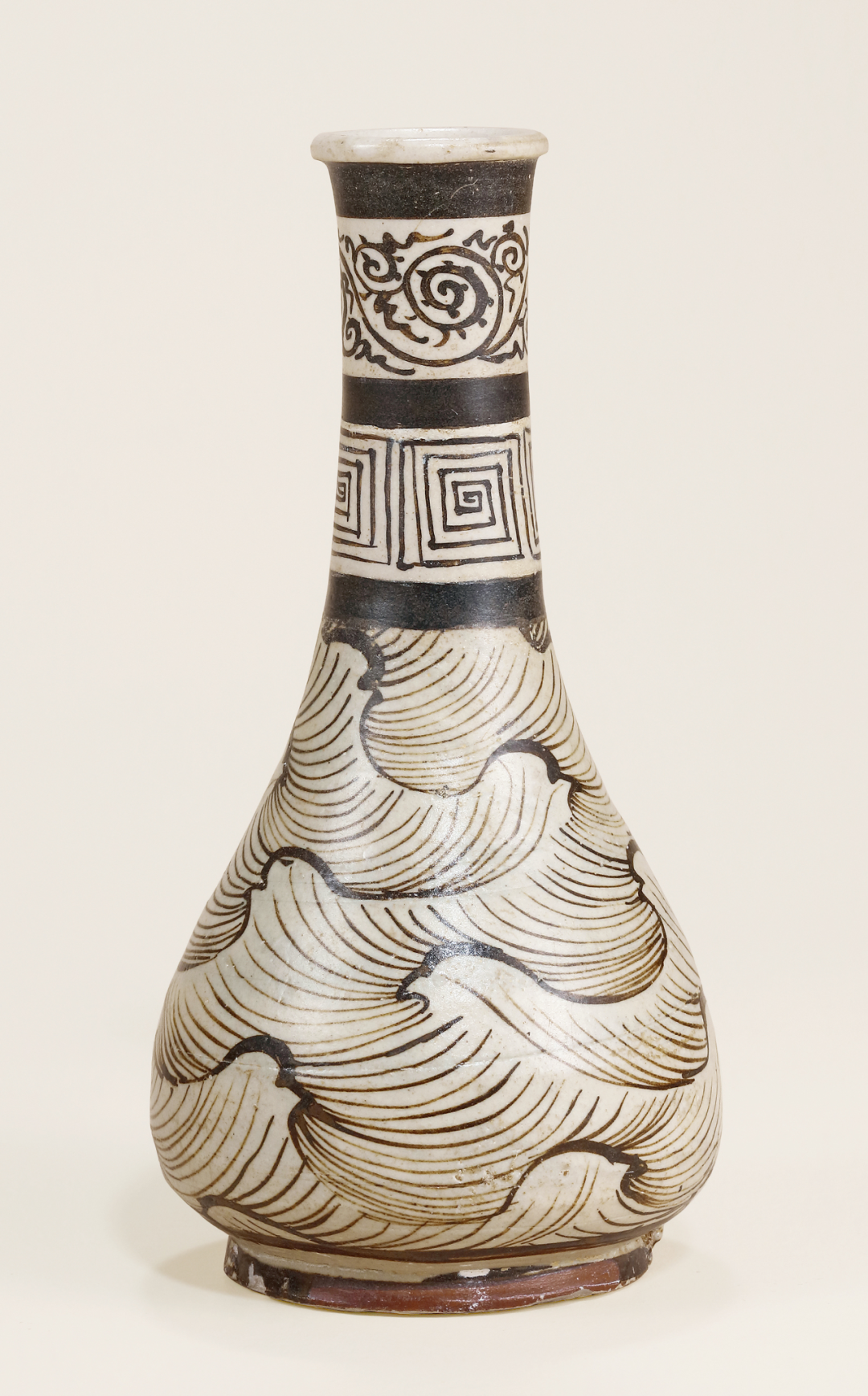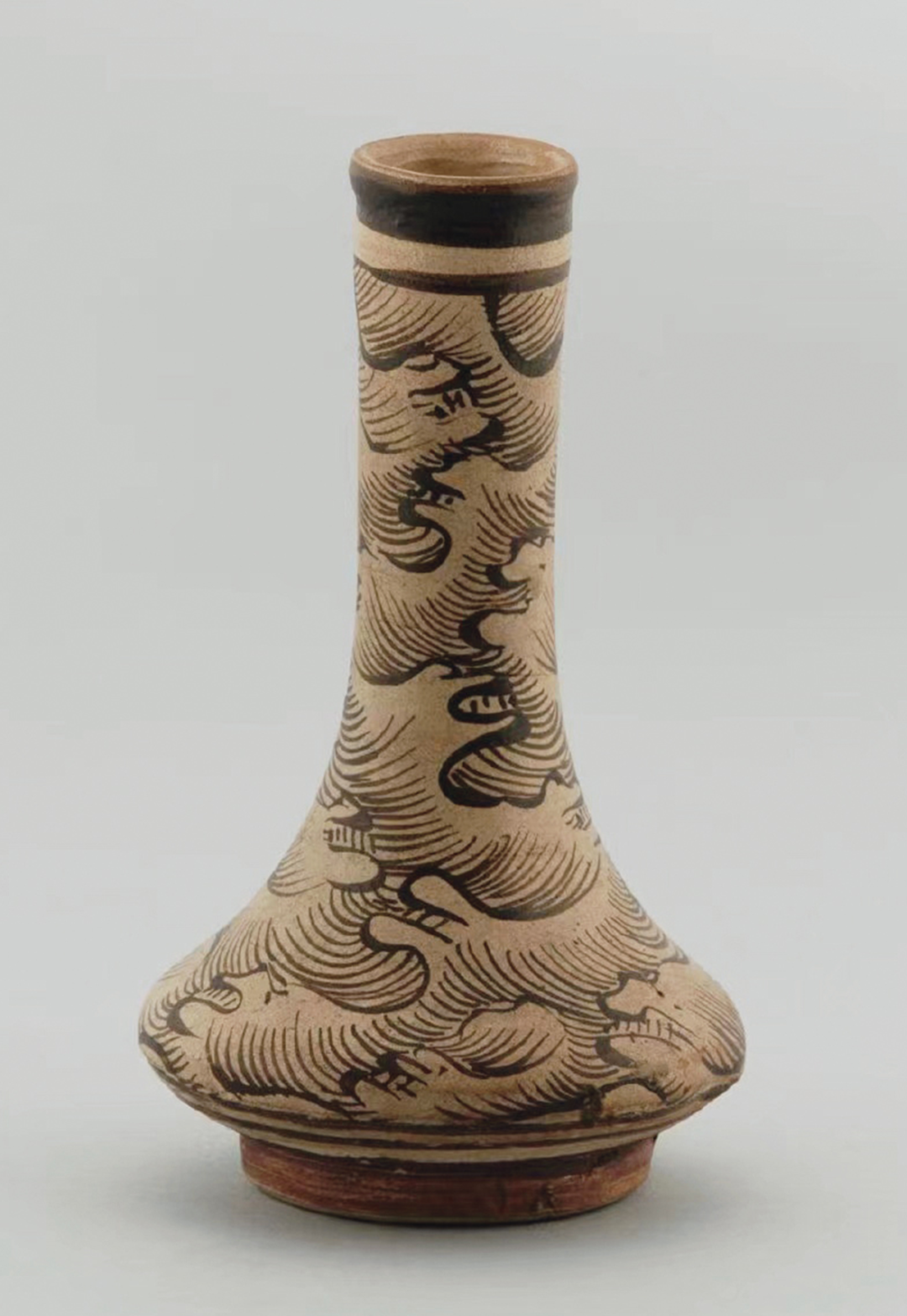 南宋 吉州窑褐彩绘海浪纹小瓶