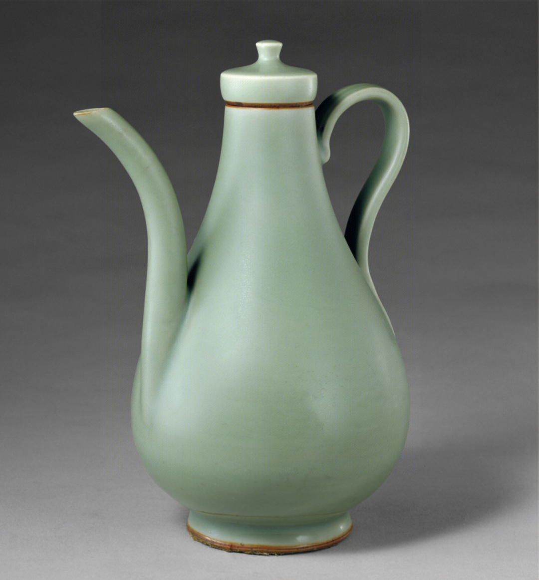 另一幅与《文会图》描画内容相近的是传宋徽宗的《十八学士图卷》。虽然是明代的仿作,但是母本应该来自宋代,我们也可以从画上看到与宋代几乎一模一样的兔毫紫盏,就是建窑酱釉兔毫茶盏,这也是宋代文人经常吟咏颂赞的茶器,在梅尧臣、苏东坡、黄庭坚等人的诗中也一再提及。同样宋代常见的斗笠型青瓷茶盏,也可以在日本奈良能满院寺院所藏的《罗汉图》上见到相同的造型。流风所至,定窑、官窑、龙泉窑、景德镇青白瓷或其它金银器、石制品等都有制作,尽管材质不同,但所呈现的时代风格是一致的。