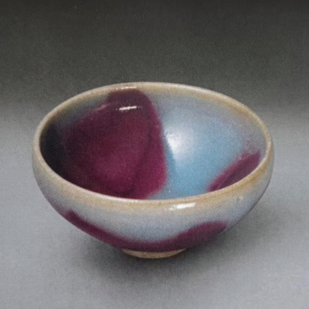 十二世纪早期,此炉仿商至汉代礼器青铜立鼎之形。仿古器形体现宋代文人学士好古之风,其时所藏之青铜器皿仅用于极少数特殊场合,以免磨损,因此仿古铜器及瓷器多有订制。钧瓷绚烂奇妙之色彩,绝非世间丹青妙手心思所能及,因其色其形皆为天成,所现窑变尤象,妙景竟生,引人遐思无穷,观其漫无崖际之变化,皆自以为独有心领神会之境界,陶然自乐,情悦性怡,斯则观赏钧瓷之独特乐趣也。
