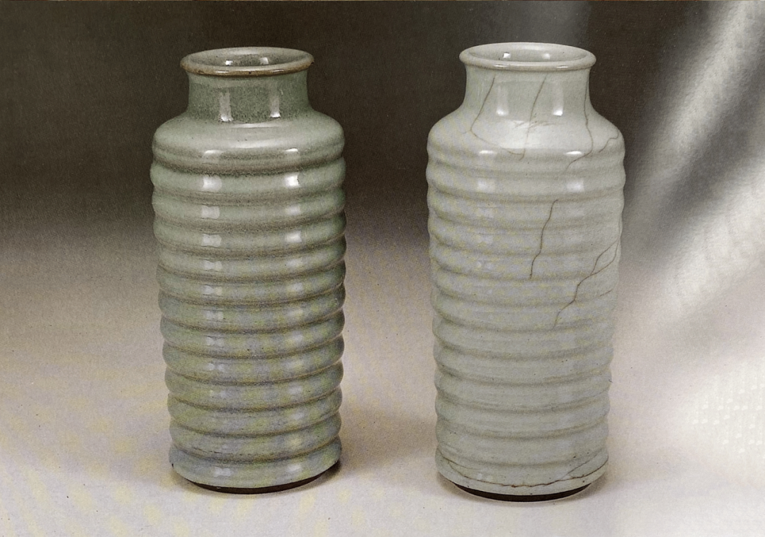 北宋 官窑粉青弦纹瓶