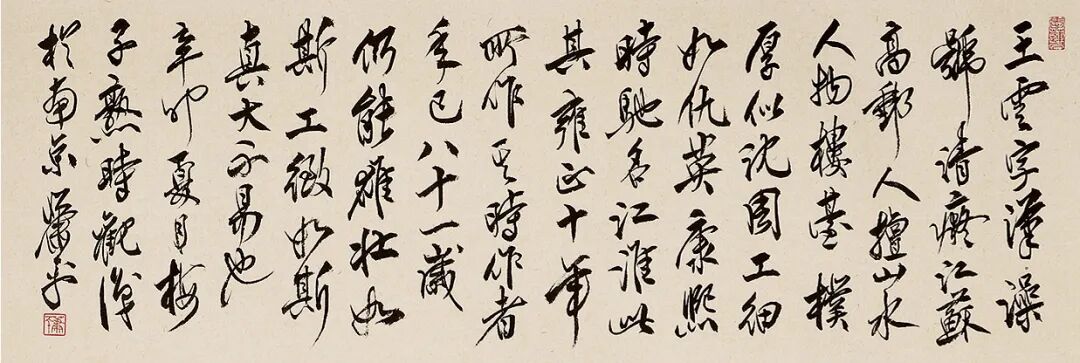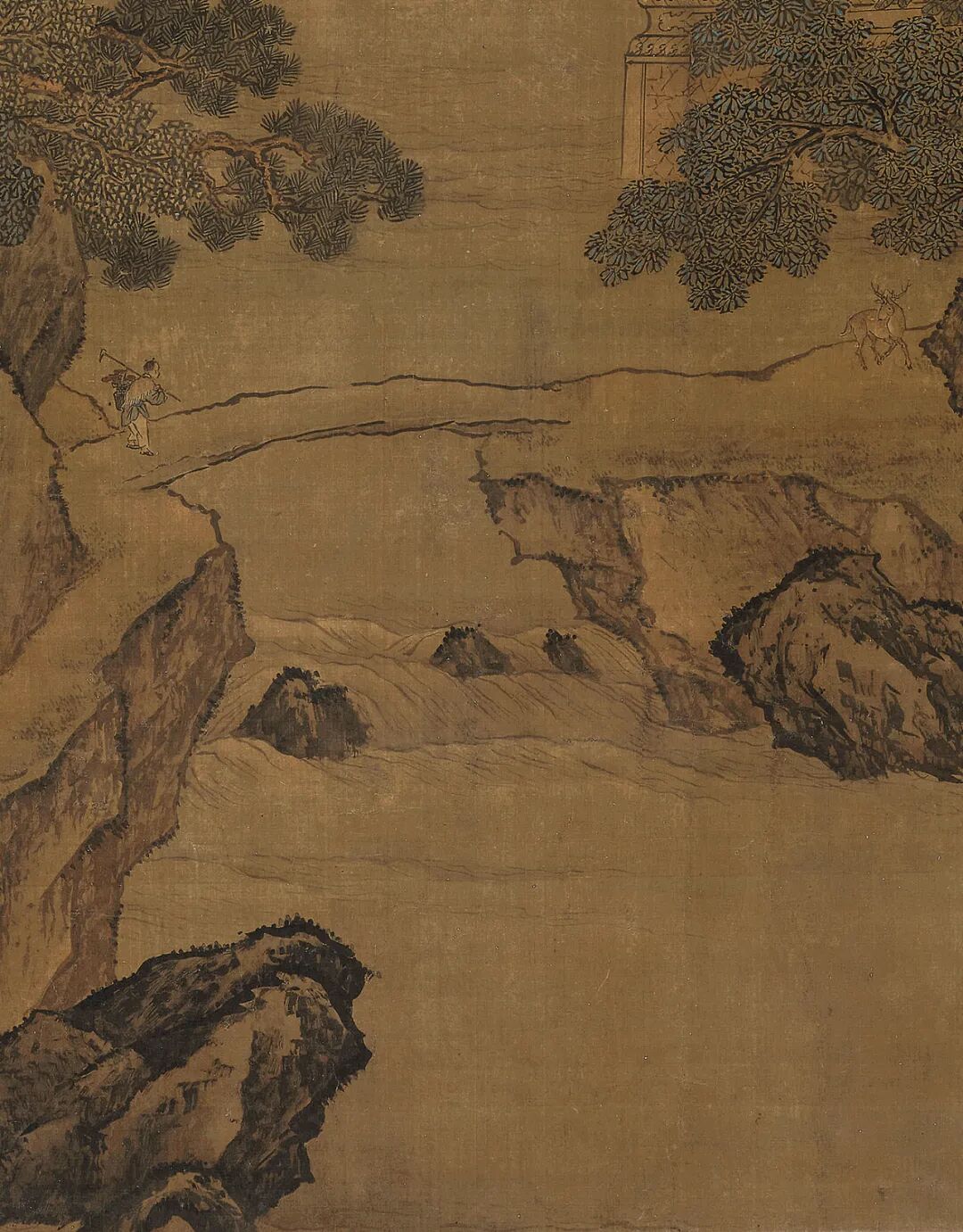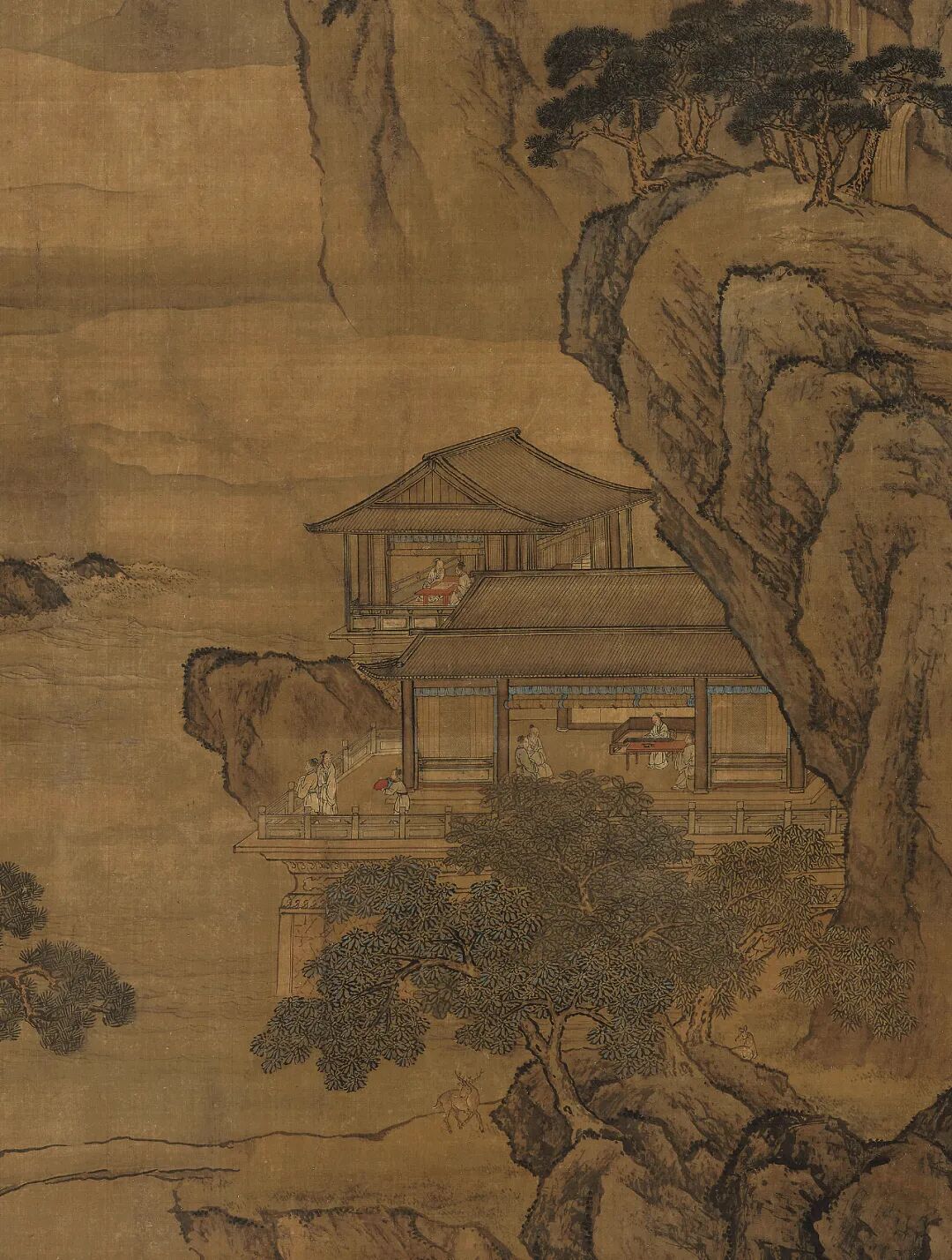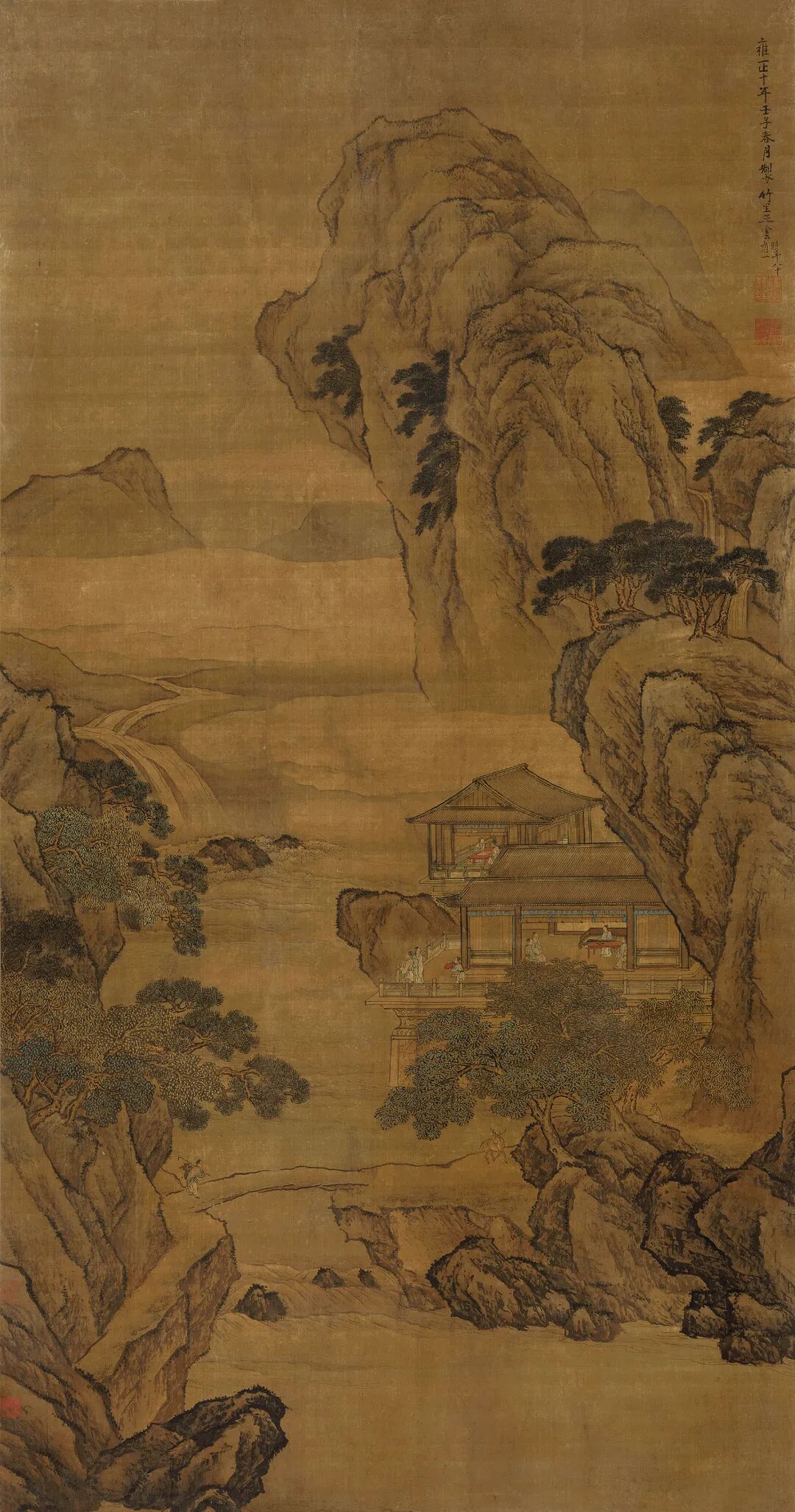 估价:RMB 1,800,000-2,800,0001.《中国古代书画图目》第一册,第207页,京12-242,文物出版社,1986年。2.《中国绘画全集·清8》,第160图,浙江人民美术出版社,2001年。3.《翰墨丹清·中国明清书画品鉴》,第65页,山东美术出版社,2013年。刘九庵著《宋元明清书画家传世作品年表》,第638页,上海书画出版社,1997年。1.此作原为章劲宇旧藏,后归北京市文物商店所有并释出市场。2.章劲宇(1916-1974),号霜盖,斋室名松蘅室,杭州人,为西泠印社早期社员,章太炎堂弟、丁辅之内侄,富藏金石书画,1949年以后为杭州市文物管理委员会委员。王云是清初扬州最著名的画家之一,曾在康熙年间入内廷供奉画苑。《扬州画舫录》记载,他“工笔楼阁学小李将军,以宋冢宰荦(宋荦)荐,待诏画苑,比之阎立本丹青云”。《江都县志》中对他进入宫廷的记载则更为详细:“王清痴,名云者,工画。尝以荐入都,供奉内庭者十七年。”根据《清史稿·宋荦传》,宋荦于康熙“二十六年,迁山东按察使,再迁江苏布政使。三十一年,调江苏巡抚”。由于宋荦的文人本色,在公务稍暇之余,还是会参与艺文之事,那么推荐王云上京也是在情理之中的。从目前的存世的王云作品来看,他是一个难得在各方面都有很高技巧的画家。《扬州画舫录》提到的“工笔楼阁学小李将军”,这是形容他在楼台界画上的成就。但他最擅长的,还是山水之中添有点景的台榭楼阁画,以此轴《深堂琴趣图》为典型代表。图绘高山之际,流水之畔,一富丽堂皇的楼阁依水而建,楼宇掩映在长青古木之中,仅有一蜿蜓小路与及临水之桥可通往此胜地,采药童子正越桥而来。楼阁中有一文人雅士在抚琴,围坐听琴者颇有陶醉之色;另一处楼阁中有两位高士对弈正酣;阁外有高士凭栏观水,身后童子捧盘恭侍。通幅来看,此地颇有仙境之感,尤其是出现在桥对岸的仙鹿,更增强了此地神秘的仙境之感。鹿作为祥瑞之一,寓意长寿,在中国传统绘画中往往与仙人等一起出现。此处,采药童子与鹿仿佛两位指引者,指引观者进入仙境,与高士共享隐居之乐,共赏胜地之奇景。作为高近两米的鸿篇巨制,整幅画以屋宇楼台为重心,台阁立于危崖之下,面对波涛澎湃的江水,自有一股巍然不动的博大气势。画中楼阁虽然工整,但是并不繁复。人物谨细,更多的继承了吴门中唐寅、仇英的绘画风格和手法。在技法上,以水墨描绘大山大水,楼阁、树木施以较浓重的色彩,人物、器物细节略施淡彩,墨色为主,色彩为辅,一派宋人高古气象。馆藏近似风格作品,可参见首都博物馆藏《水殿荷风图》、济南市博物馆的《高阁临江图》、天津博物馆的《江楼清宴图》和扬州市文物商店藏的《蓬壶仙馆图》等。这些画都体现出王云一致的构图风格:以水墨作山水,或有淡设色,在大山水中再精心绘置一个或一组极精致的楼宇。此作曾为章劲宇(1916-1974)所珍藏,章劲宇乃是西泠印社早期社员,近世大儒章太炎的堂弟、丁辅之内侄,富藏金石书画。后为北京市文物商店所有,经国家文物局组织的全国古代书画鉴定小组鉴定,收录于文物出版社出版的《中国古代书画图目》第一册,有多次权威出版著录,如浙江人民美术出版社出版的《中国绘画全集》、刘九庵编著的《宋元明清书画家传世作品年表》等书。