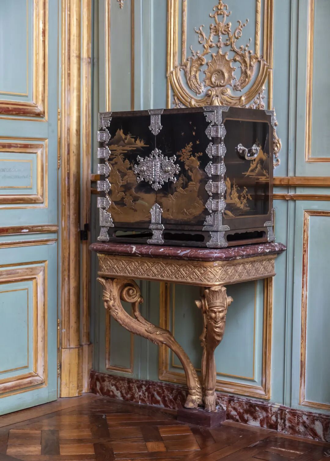 另一对以江户时代日本漆器和银镶装饰的立柜(约1640至1680年)手工无比精细,出自英格兰国王威廉三世和女王玛丽二世的收藏(估价80万至120万欧元),装饰元素反映两者在位的时期受佛兰芒和荷兰风格的强烈影响,而且偏重东亚文化的元素。