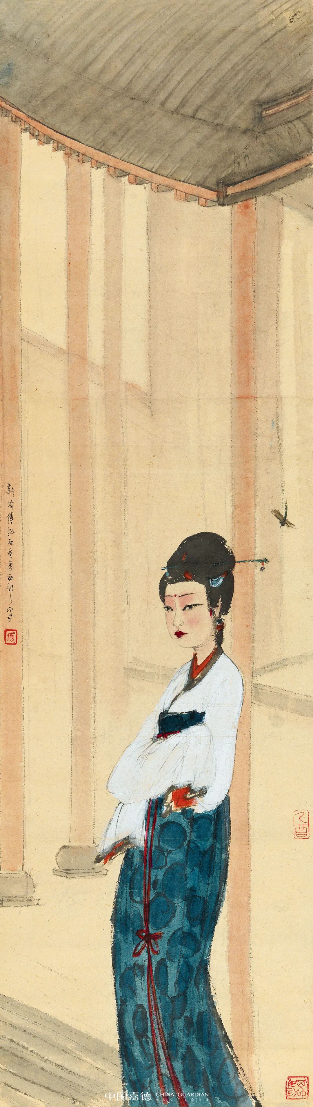 傅抱石的《春词诗意》,一位唐装仕女倚在屋前廊柱下,一只蜻蜓看起来像要落在仕女的发簪上,跟这位春风一样柔美的女子一起享受春天暖洋洋的慵懒。刘小东更加直白,《春懒人闲》比起傅抱石的优雅,更像现实主义的镜头,熟悉到让你感觉无比亲切真实。
