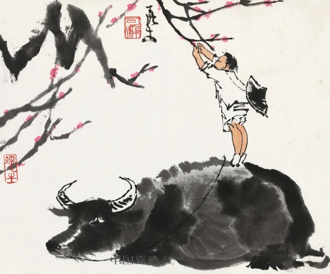 春天的孩子是最开心的,撸榆钱、撸槐花、放风筝、逮毛毛虫……,童年回忆杀不知道收割了多少80、90后的热泪。李可染先生的《春到枝头》,站在水牛背上的小孩儿正在踮脚伸手够树枝上的红花,像不像你无忧无虑的童年?