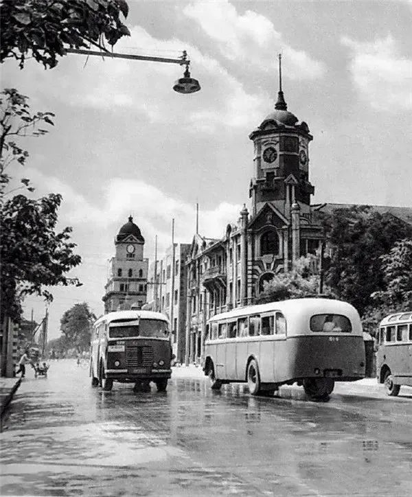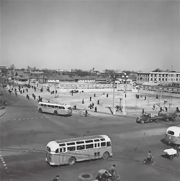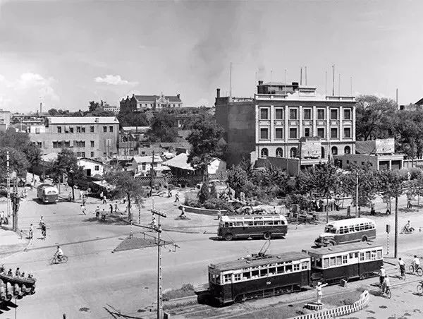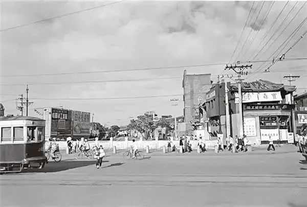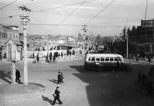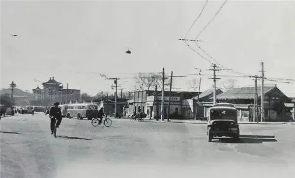 1953年,西四牌楼路口西南角。北行的公共汽车是4路小环行。
