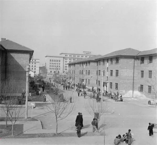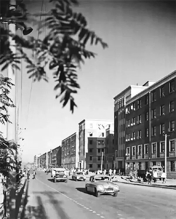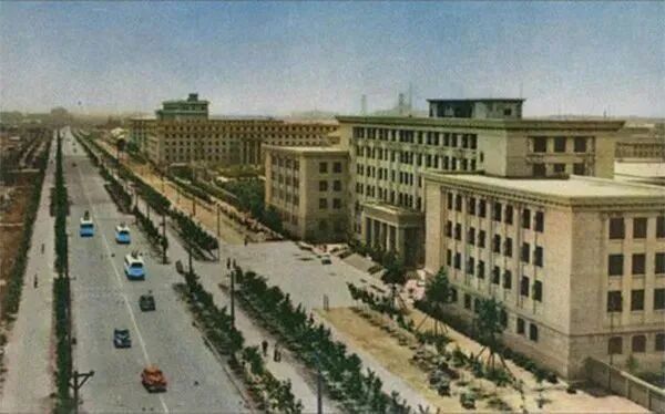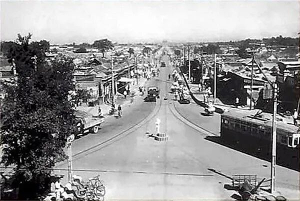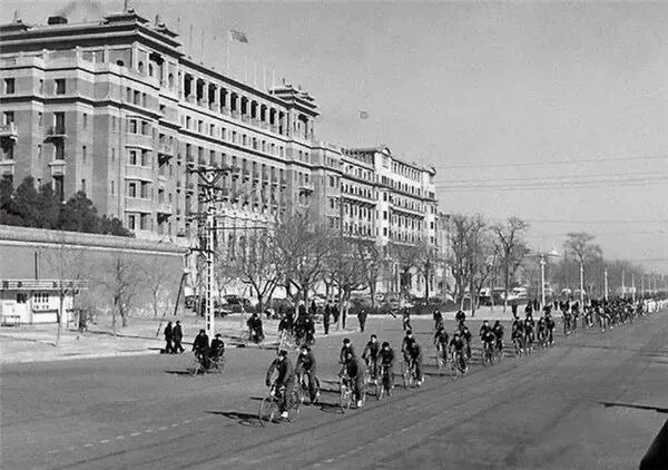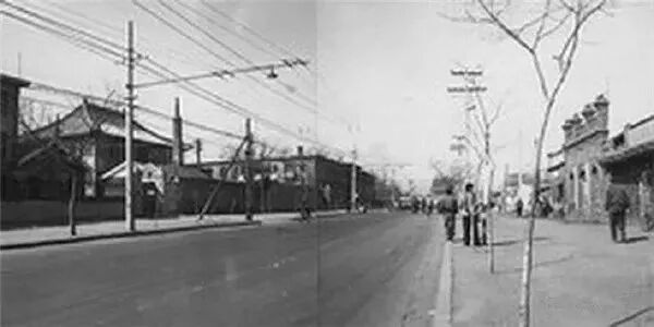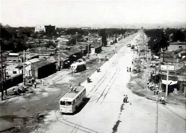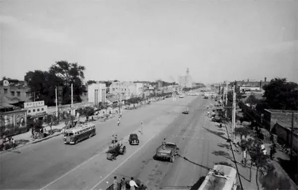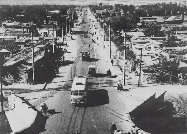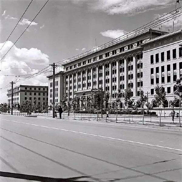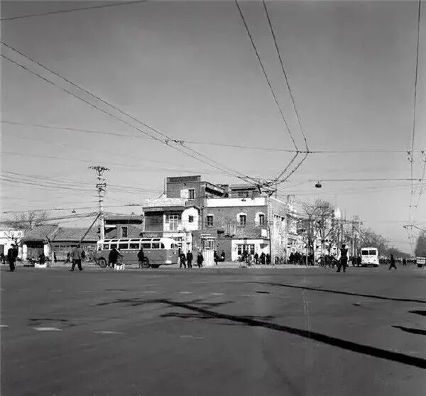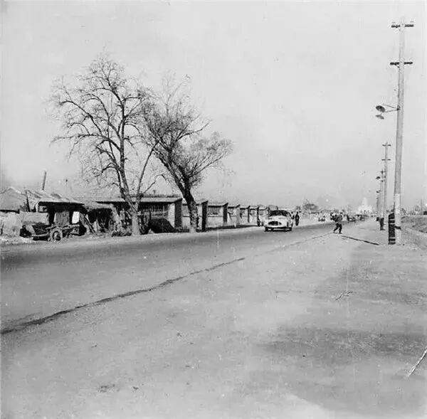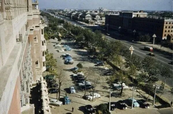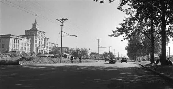 1954年,白广路刚刚通车的街景。是在路东的“黑冶设计院”一侧向西南拍摄。现在画面中的楼房应是国家电网的第三招待所。