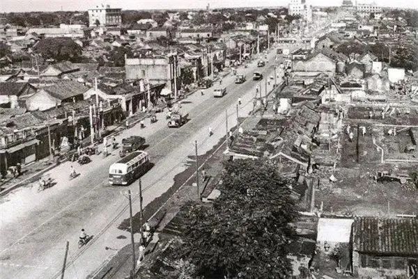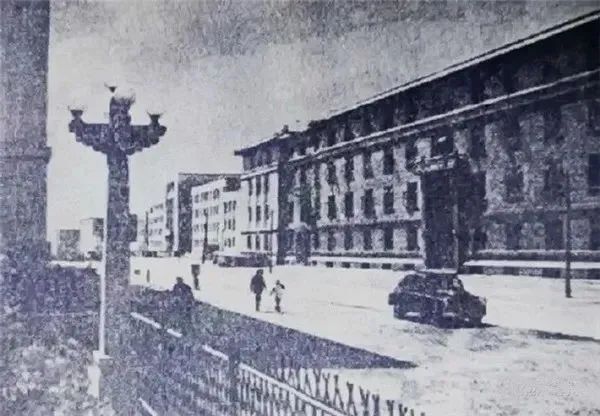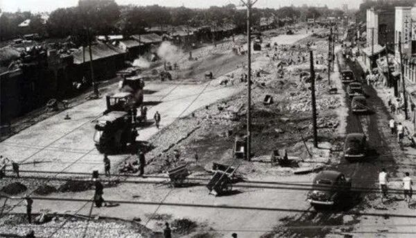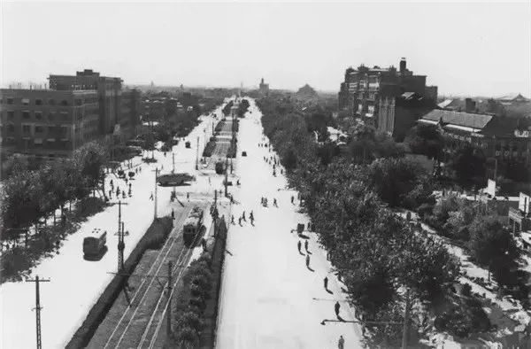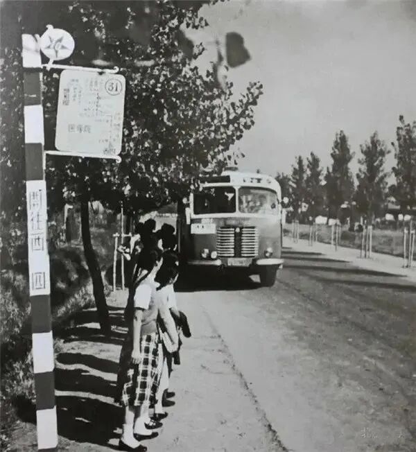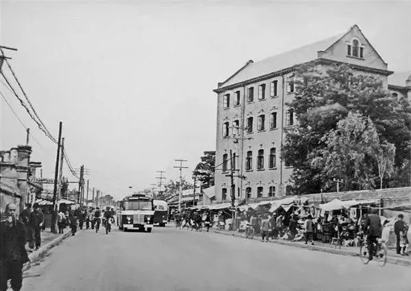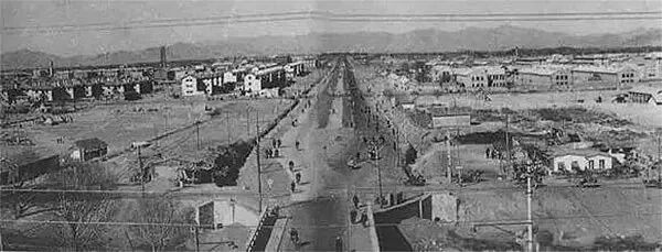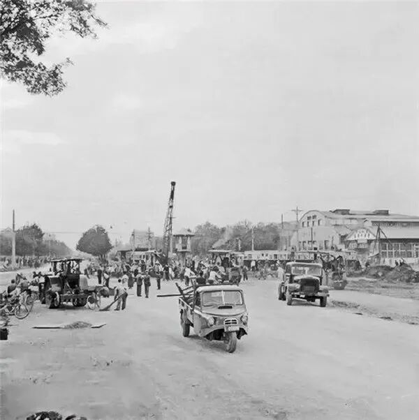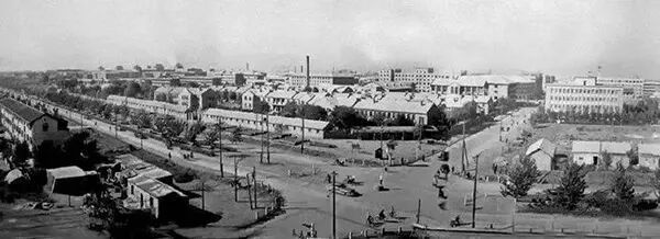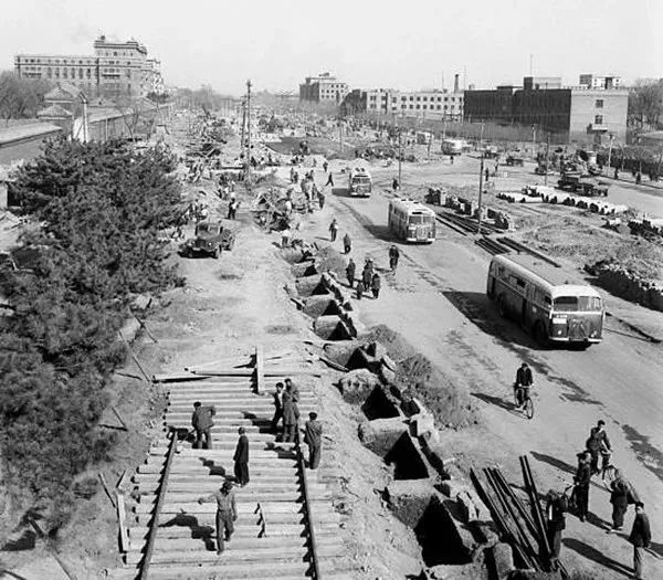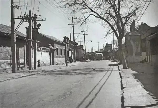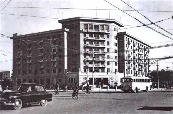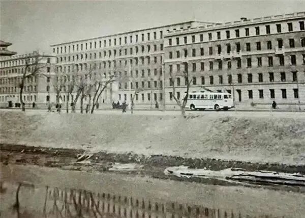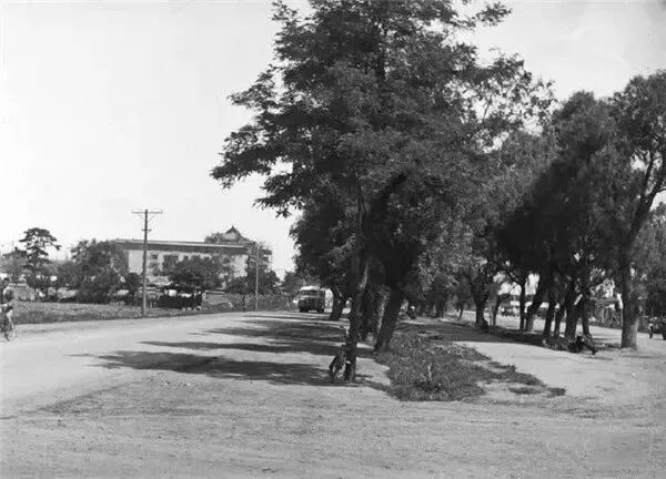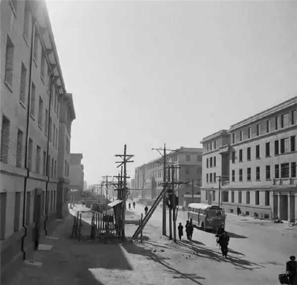 1954年,白广路刚刚通车的街景。是在路东的“黑冶设计院”一侧向西南拍摄。现在画面中的楼房应是国家电网的第三招待所。