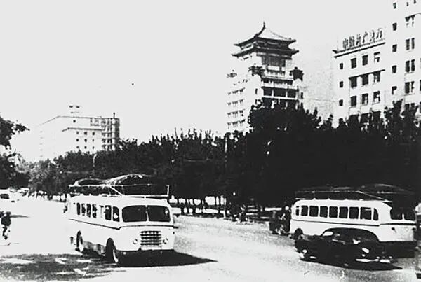 1965年,天安门前,通过天安门广场的公共汽车是4路环行(捷克克罗莎大轿车挂斗),分内外环双向行驶,总站在平安里,算是绕北京皇城的“一环”。