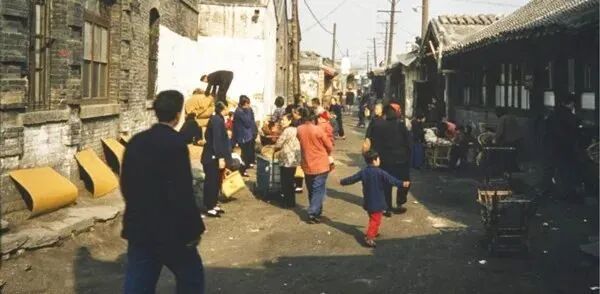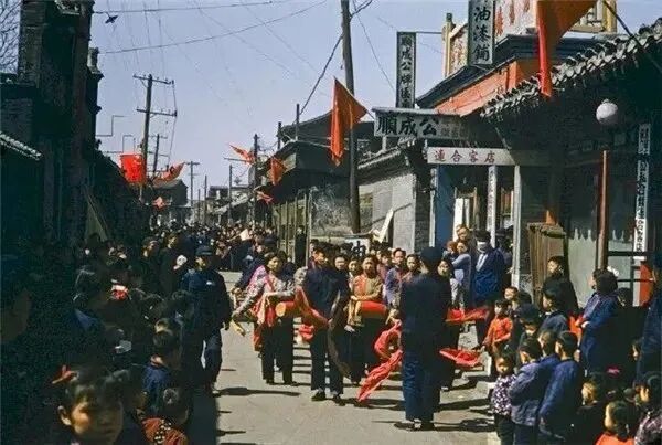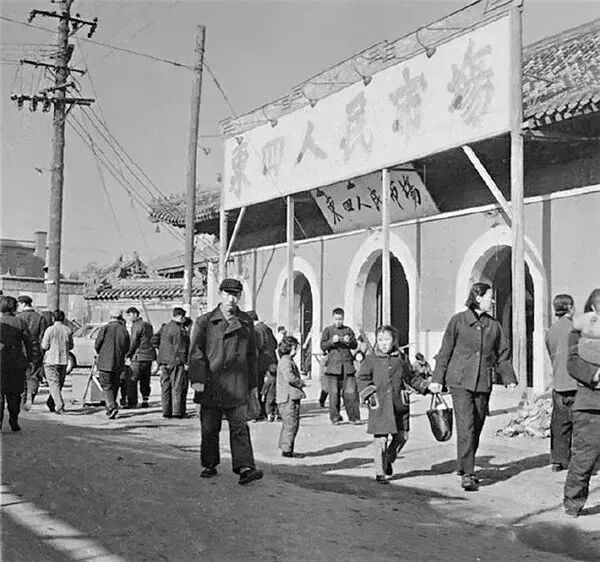 1952年,猪市大街北隆福寺街。东四人民市场,隆福寺山门就是市场大门,这会儿董老还没给题字呢。