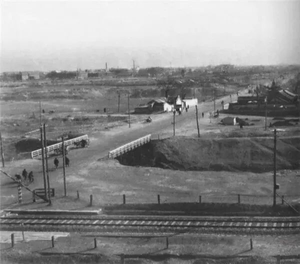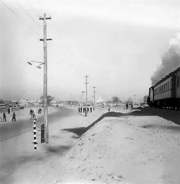 1953年,朝阳门城楼东北面,环城铁路道口。此图当为城楼最后遗照,当年10月即下令拆除。