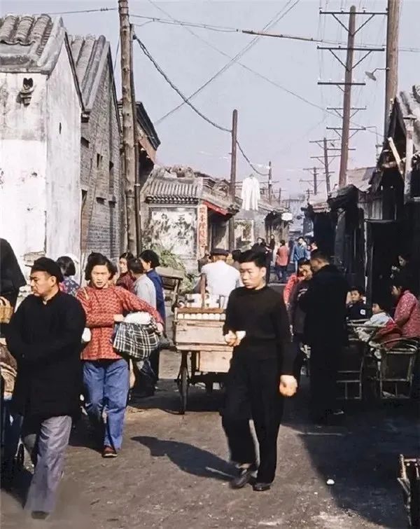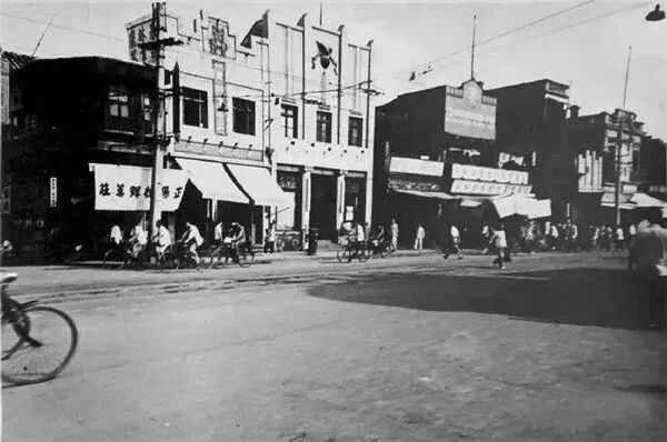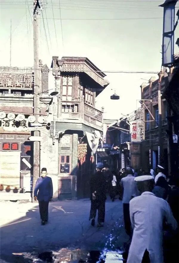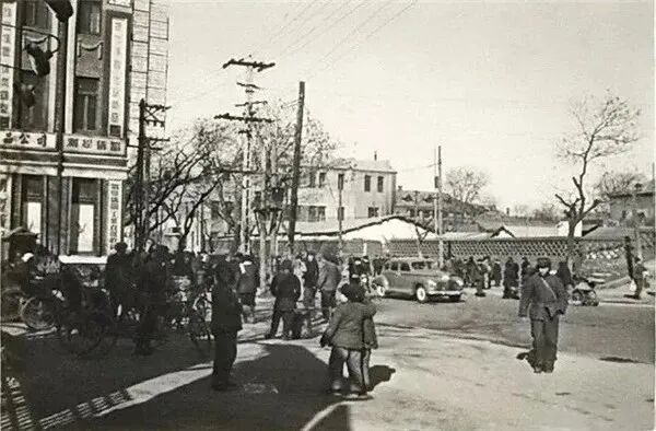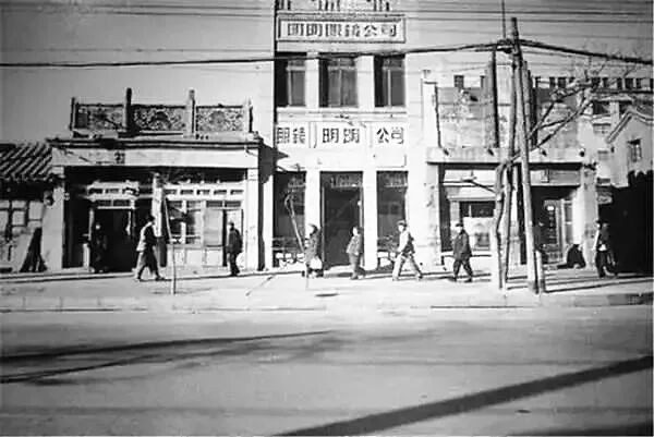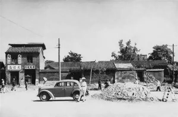 1950年,鼓楼前大街路西烟袋斜街东口。以南为公和魁茶食店,是清真糕点铺。